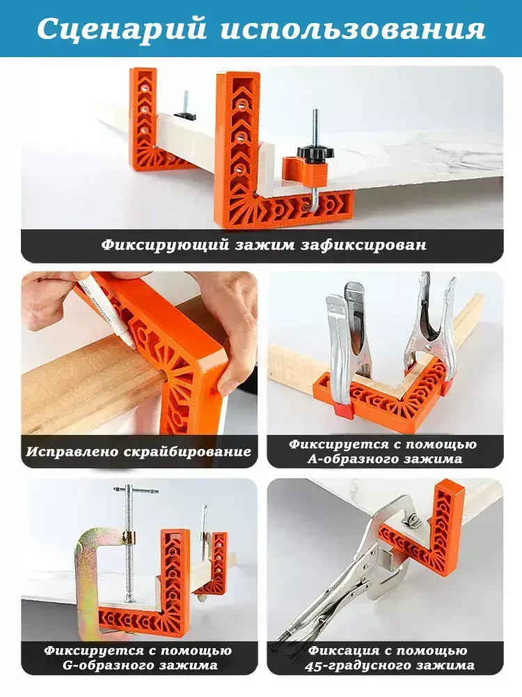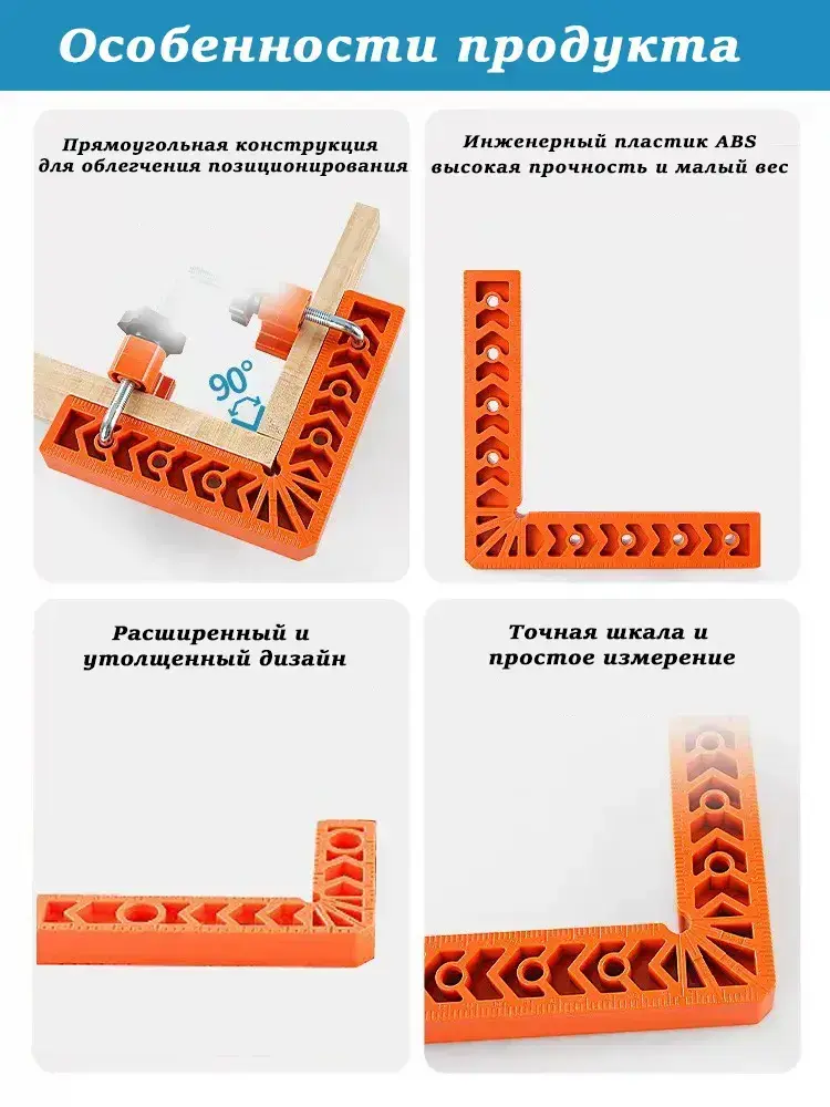 Набор столярных угольников 100х100 мм (4 шт.), пластик.