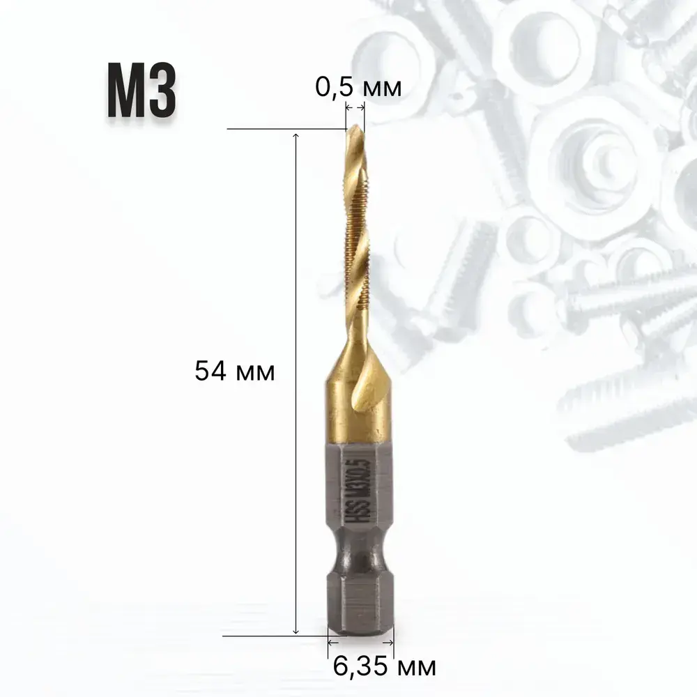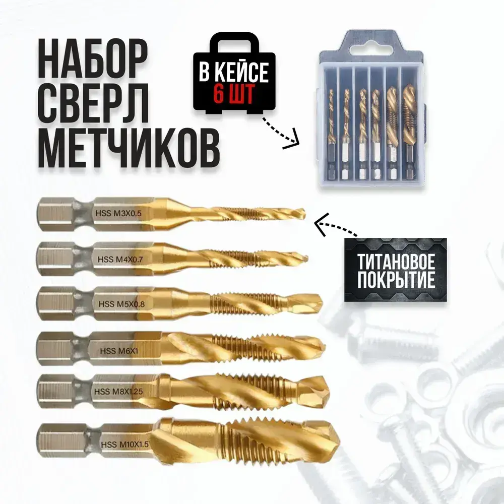 Набор сверл-метчиков с титановым покрытием из быстрорежущей стали, Набор сверл c метчиками по металлу 6 шт.
