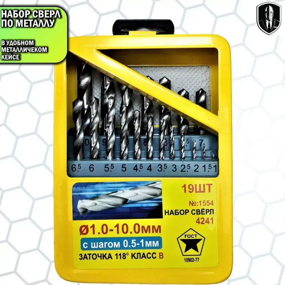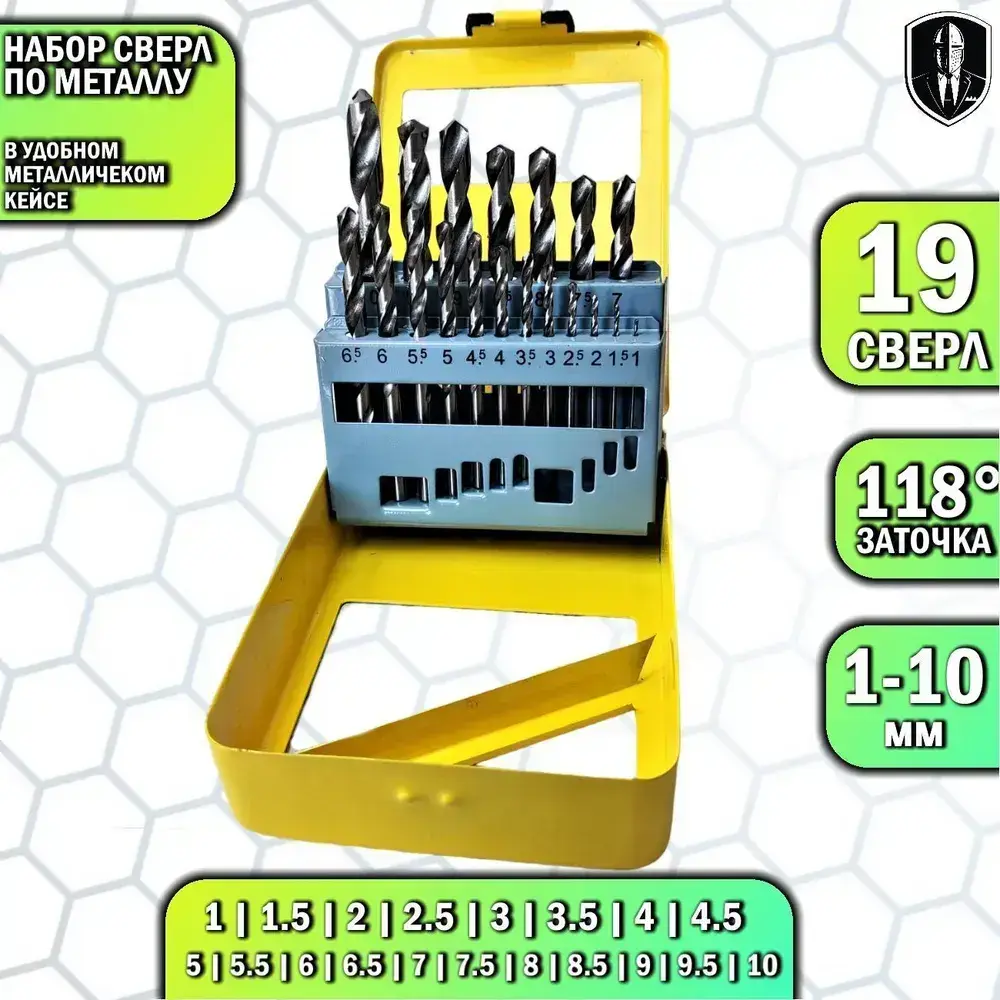 Набор сверл по металлу 19 предметов