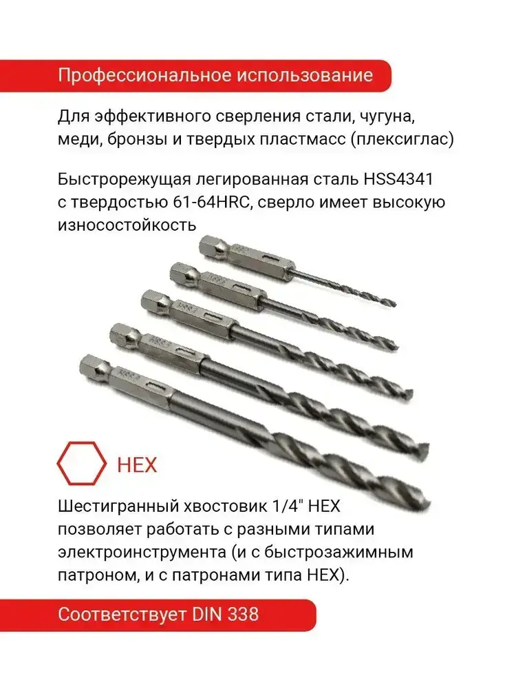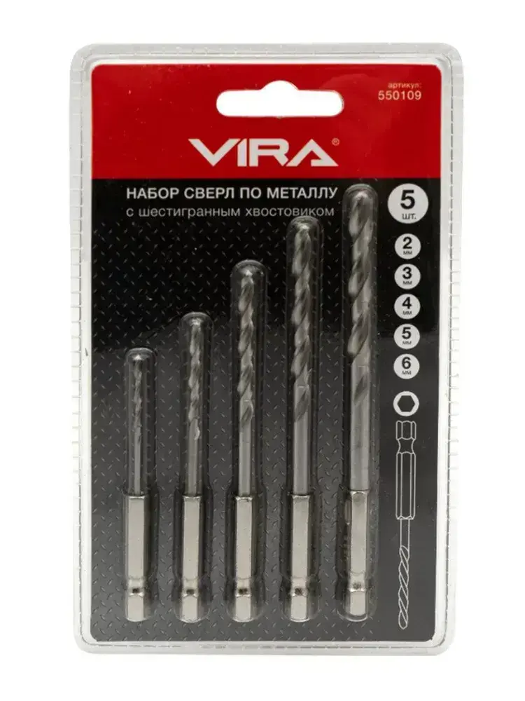 Набор сверл по металлу c шестигранным хвостовиком 5 шт VIRA