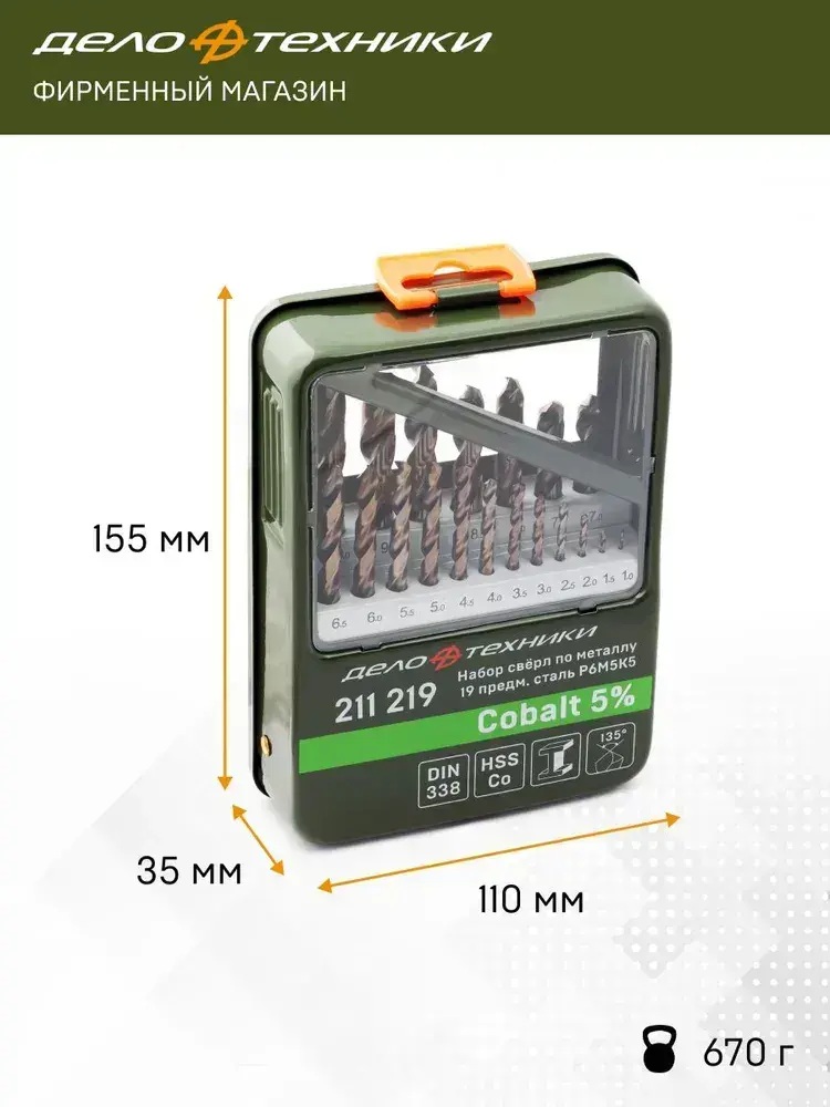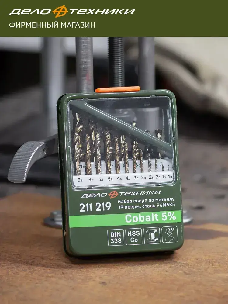 Набор сверл по металлу Cobalt 5% (d1.0 - 10 мм), 19 шт., Дело Техники, 211219