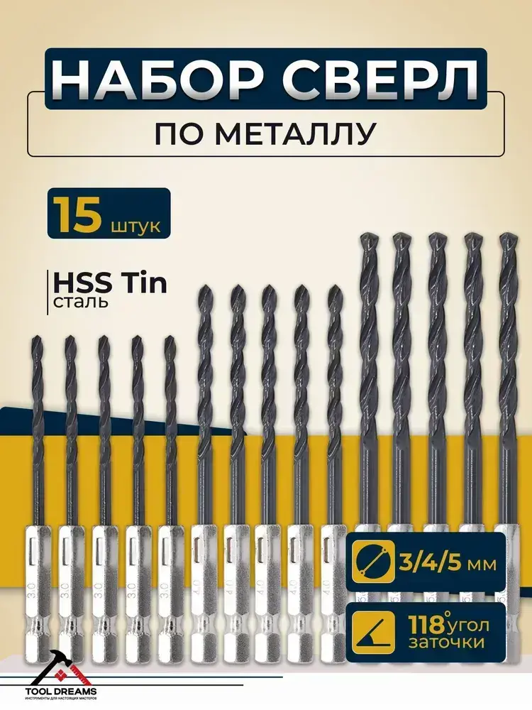 Набор сверл по металлу с титановым покрытием, 15 шт