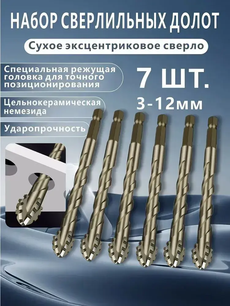 Набор свёрл 7 шт по стеклу , керамике , плитке Сверла для керамогранита и мрамора 3-12 мм