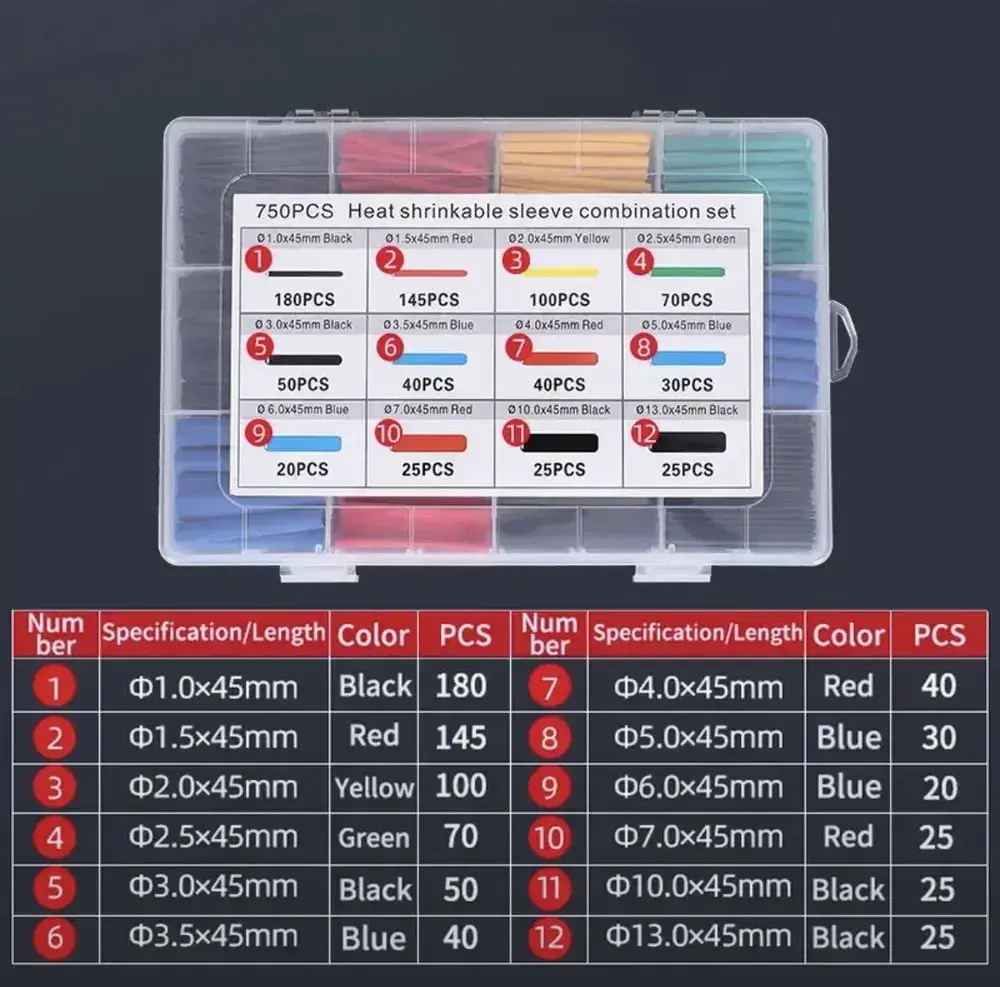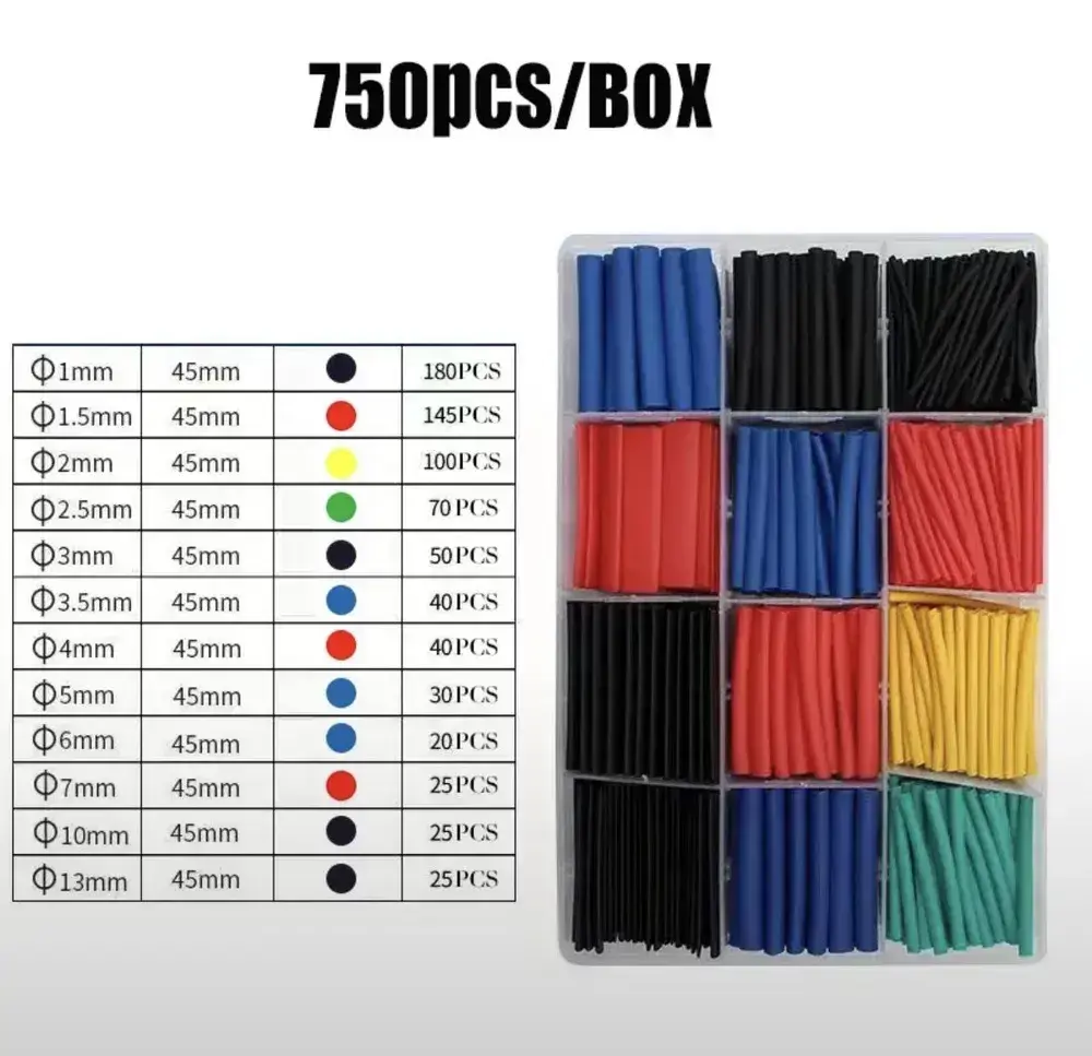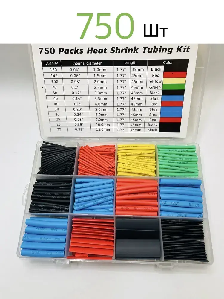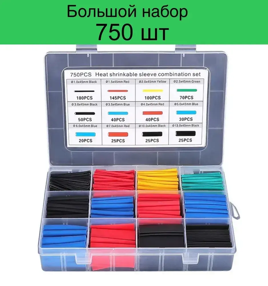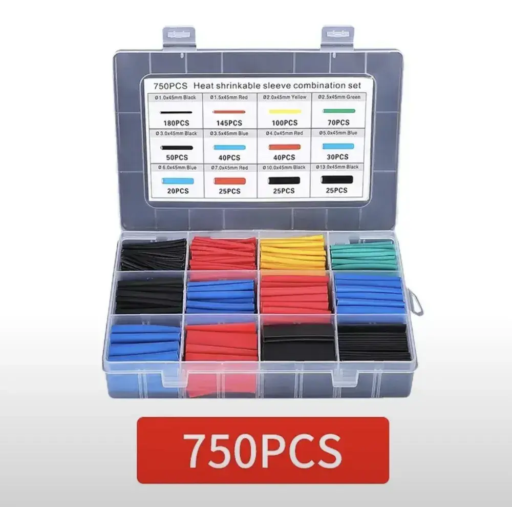 Набор термоусадочных трубок - 750 штук в пластиковом боксе. Термоусадка 1:2