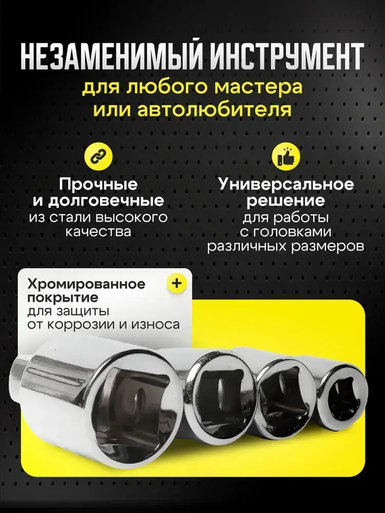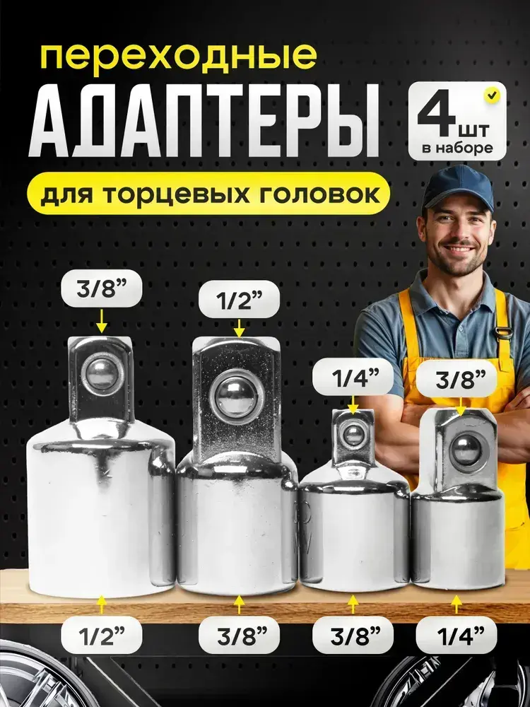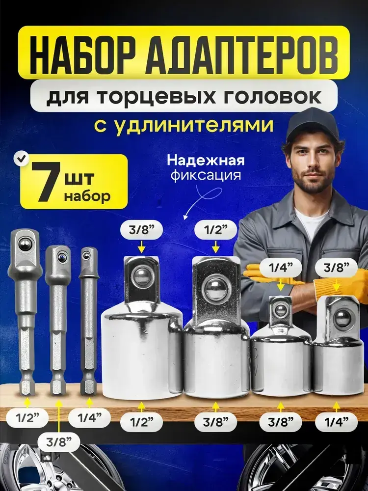 Набор торцевых головок, набор адаптеров для торцевых головок 1/4", 3/8", 1/2", комплект 7 шт