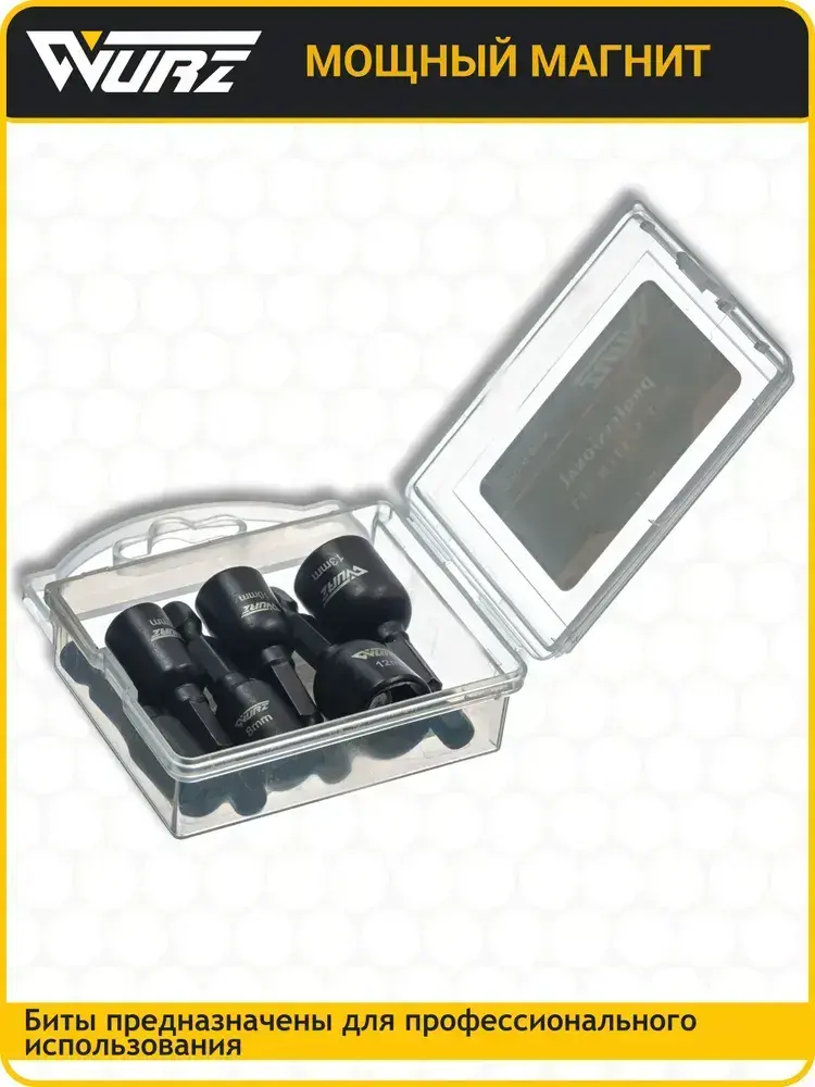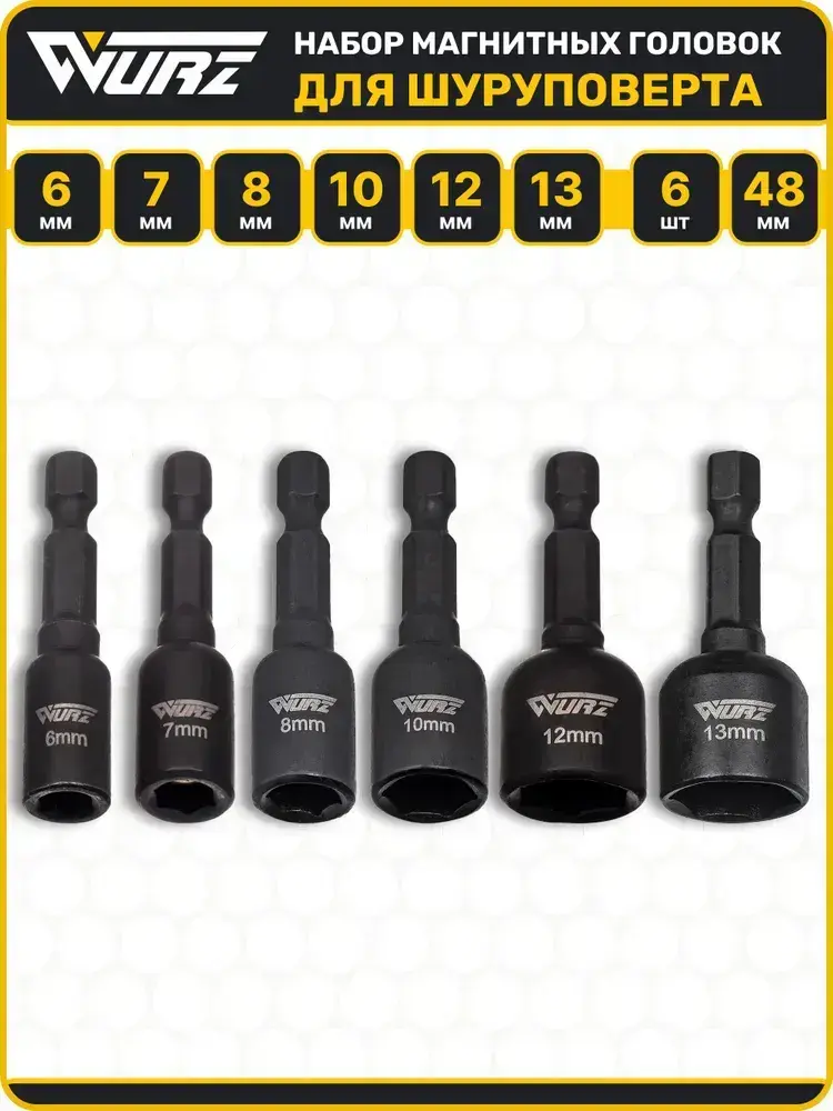 Набор торцевых магнитных головок для шуруповерта 6-13мм Длина 48мм 6шт. WURZ 4800-6