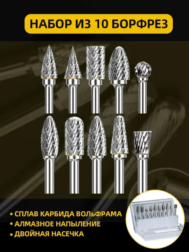 Набор твердосплавных борфреза по металлу 10 шт/ шарошка по металлу для шуруповерта