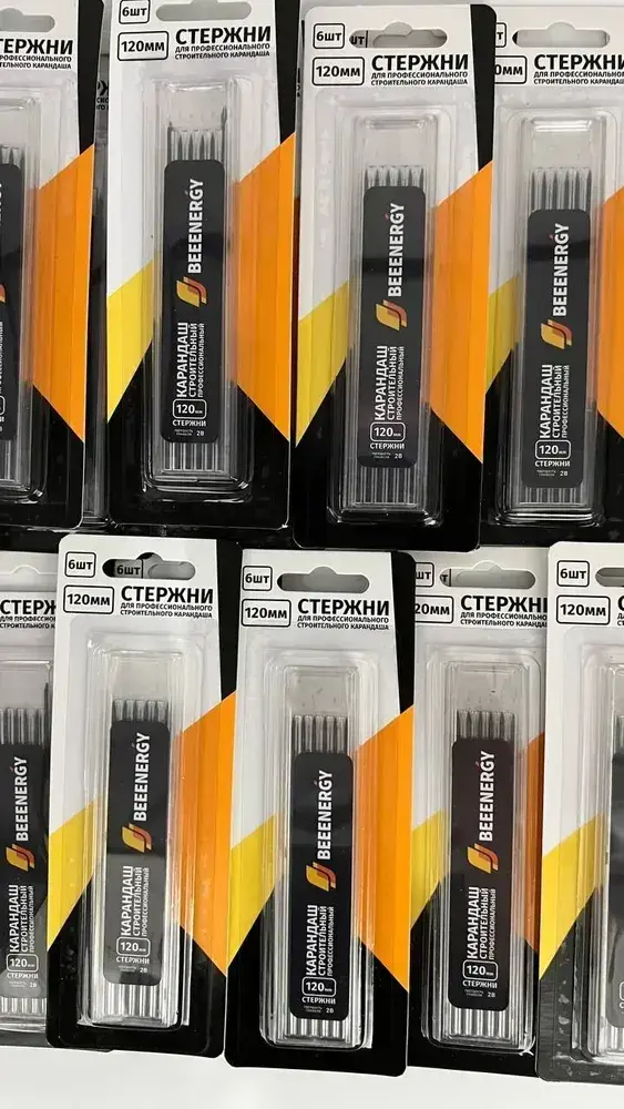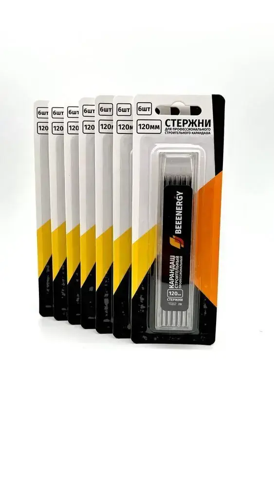 Набор твердых грифелей 6 шт. для строительного карандаша "Beeenergy" (твердость Н)