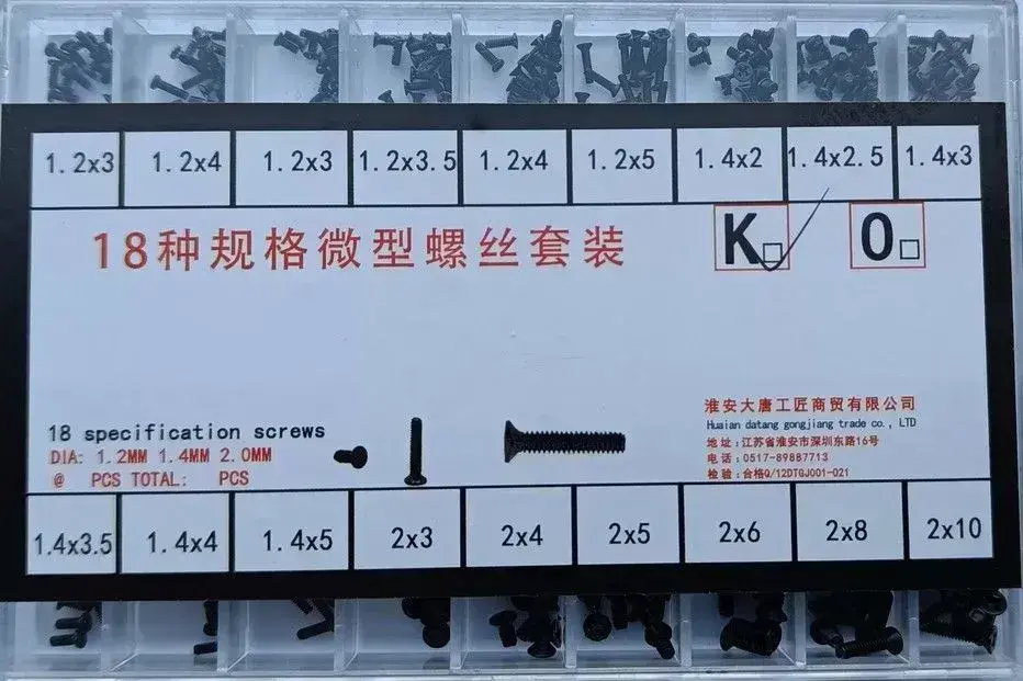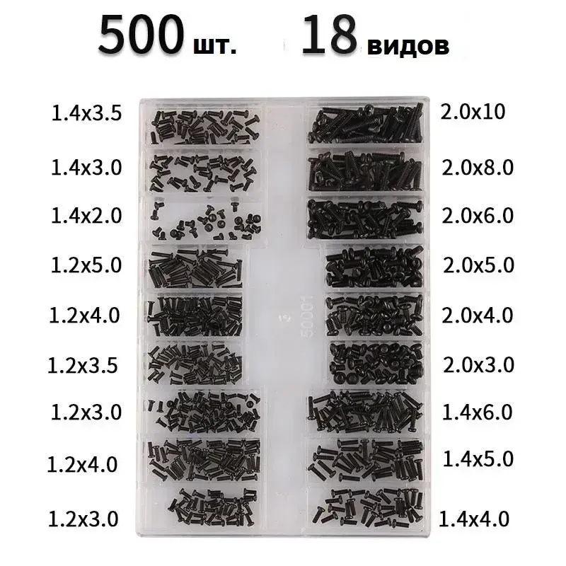 Набор винтов (18 видов, 500 шт.) для ноутбуков, планшетов, очков.