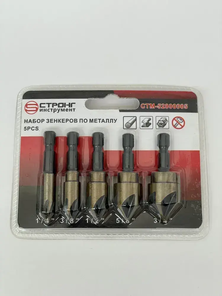 Набор зенкеров по металлу 5PCS 6, 9, 12, 15 и 19 мм с титановым покрытием, Стронг СТМ-52800005