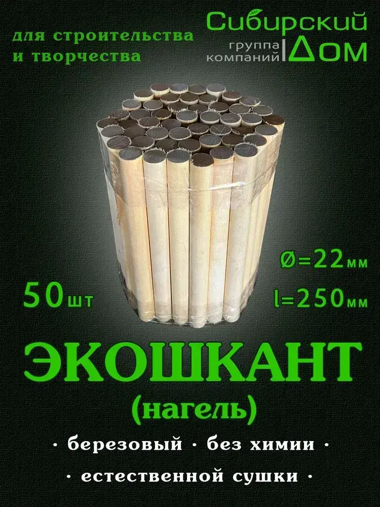 Нагель шкант берёзовый 22х250мм, 50штук