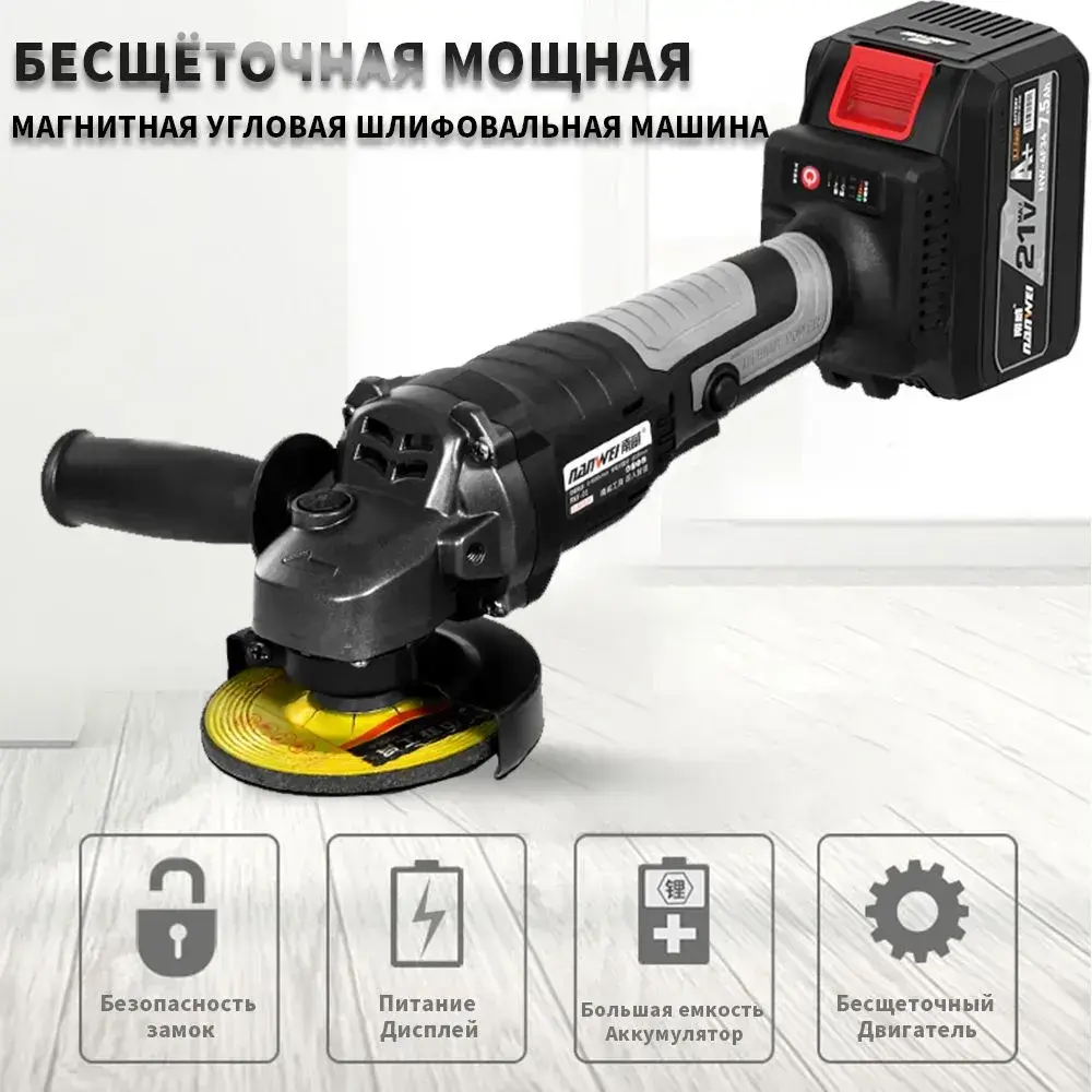 NANWEI Угловая шлифовальная машина 21V 125 м (обороты холостого хода 9000) Емкость аккумулятора