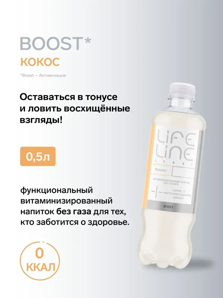 Напиток LifeLine Light без сахара, с витаминами, Boost, кокос, без газа 0,5 л