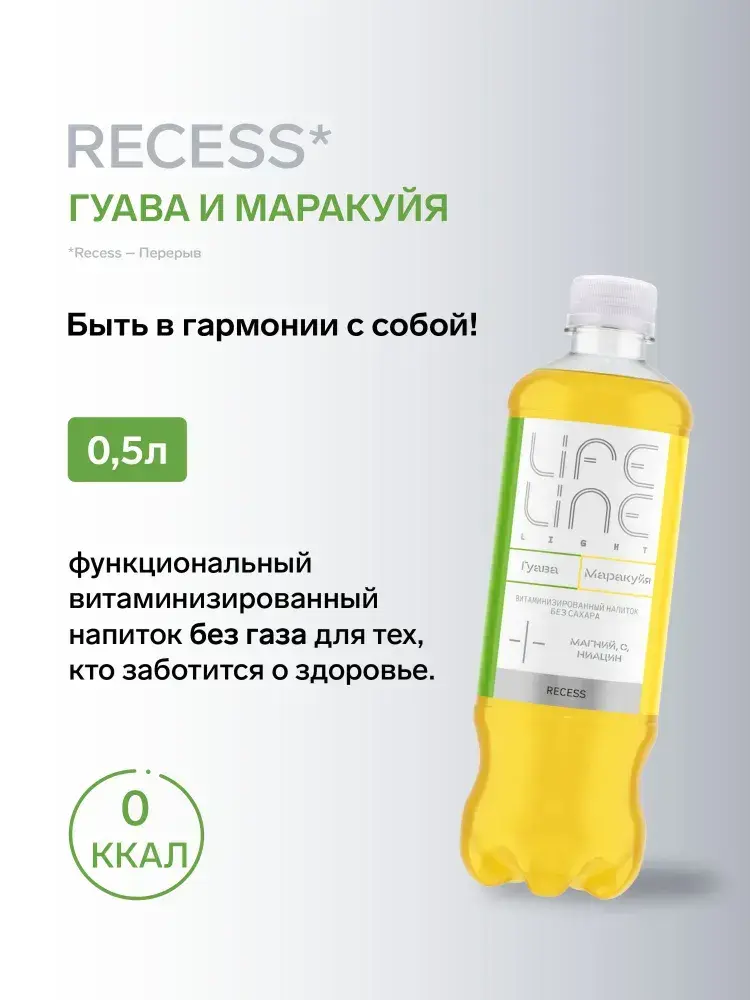 Напиток LifeLine Light без сахара, с витаминами, Recess, гуава и маракуйя, без газа 0,5 л