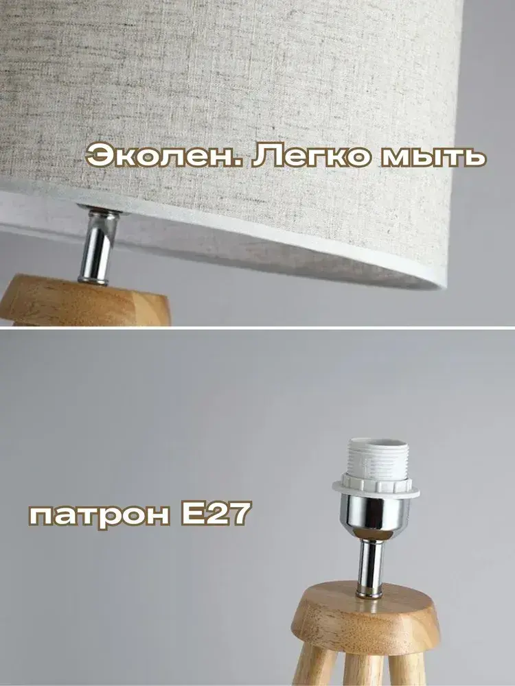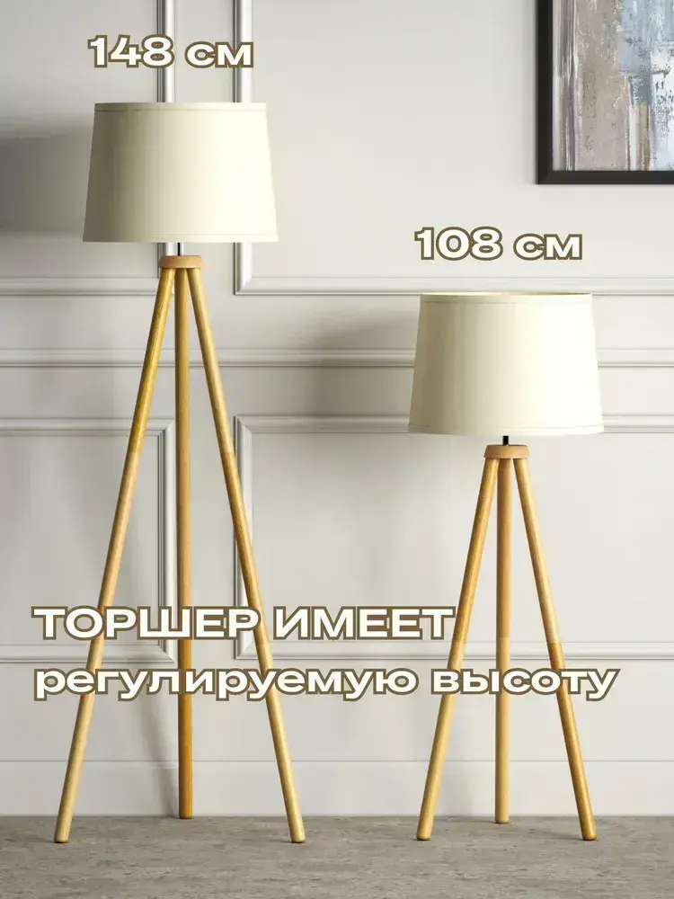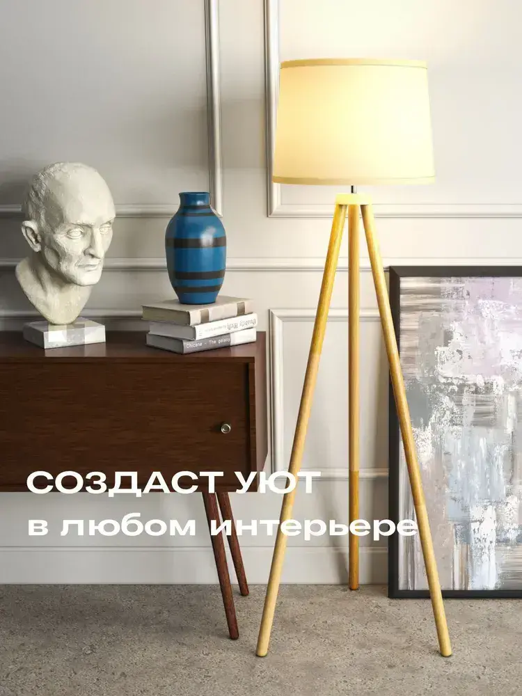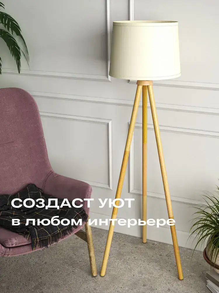 Напольный светильник Скандинавия с абажуром / Интерьерный торшер прикроватный из дерева в спальню в стиле лофт / Декоративная лампа с абажуром, Е27, 40 Вт