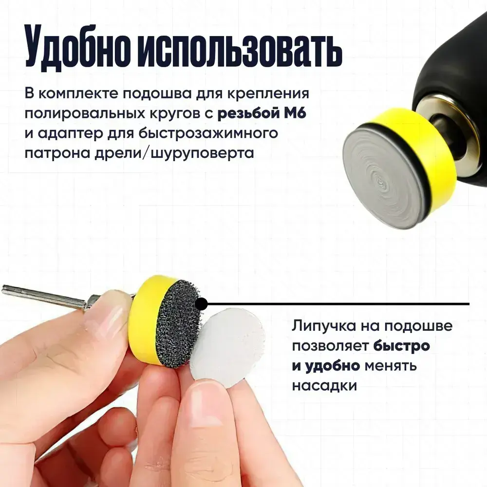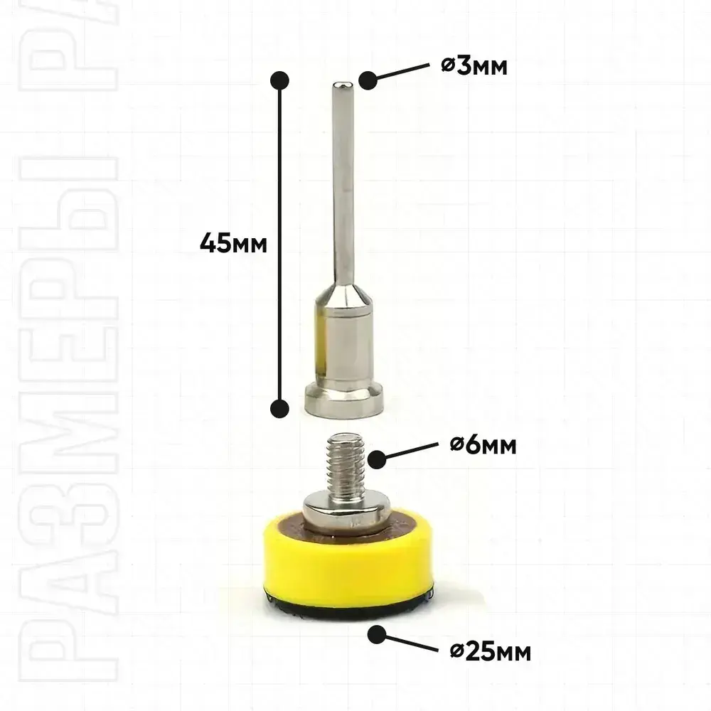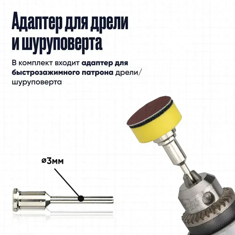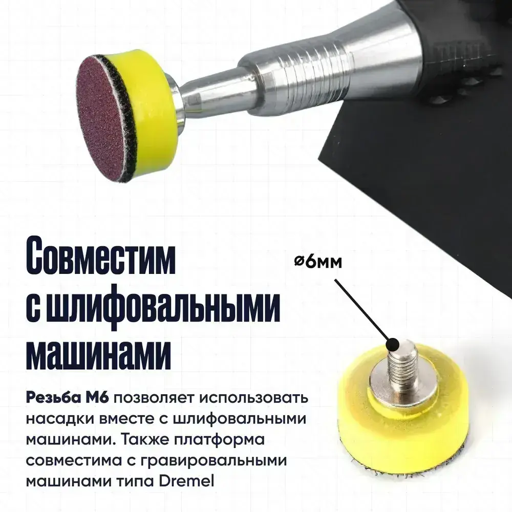 Насадки на гравер / Набор шлифовальных насадок для полировки для гравера и шуруповерта / Диск шлифовальный на липучке 25 мм, Р80 до Р3000 по 10 шт., БАЗ 100 шт. Водостойкая.