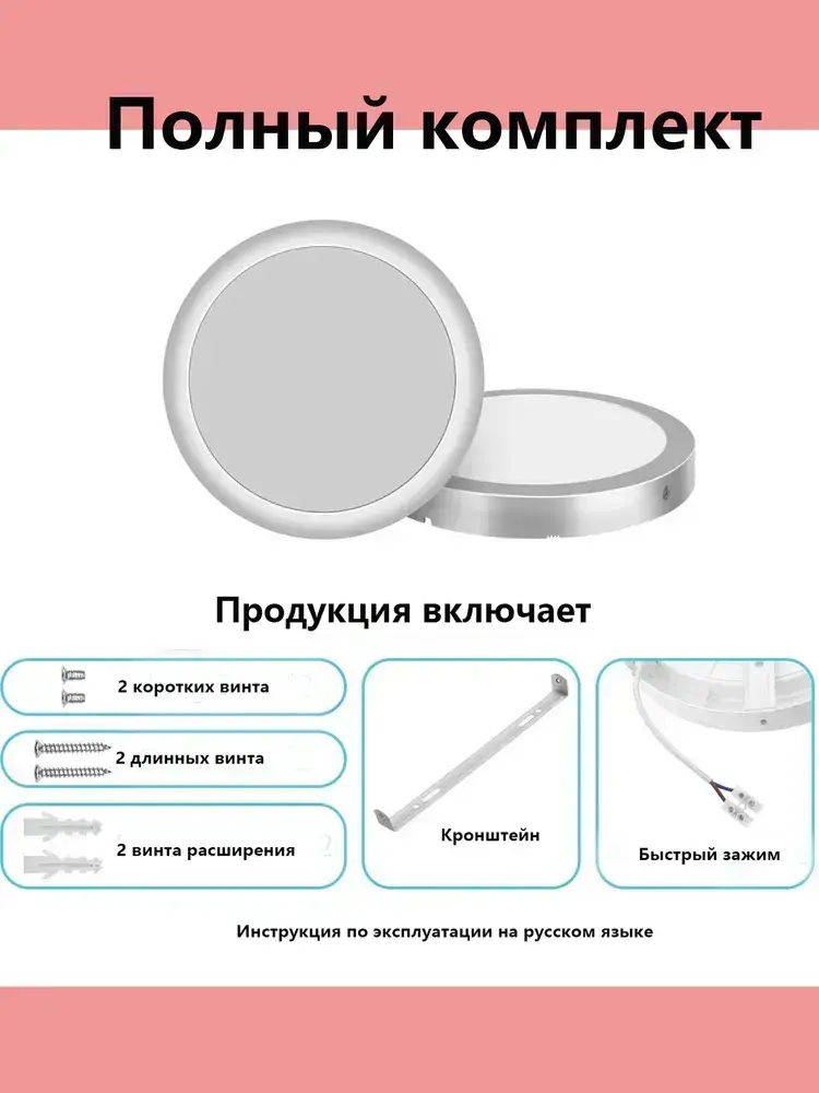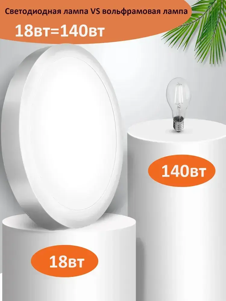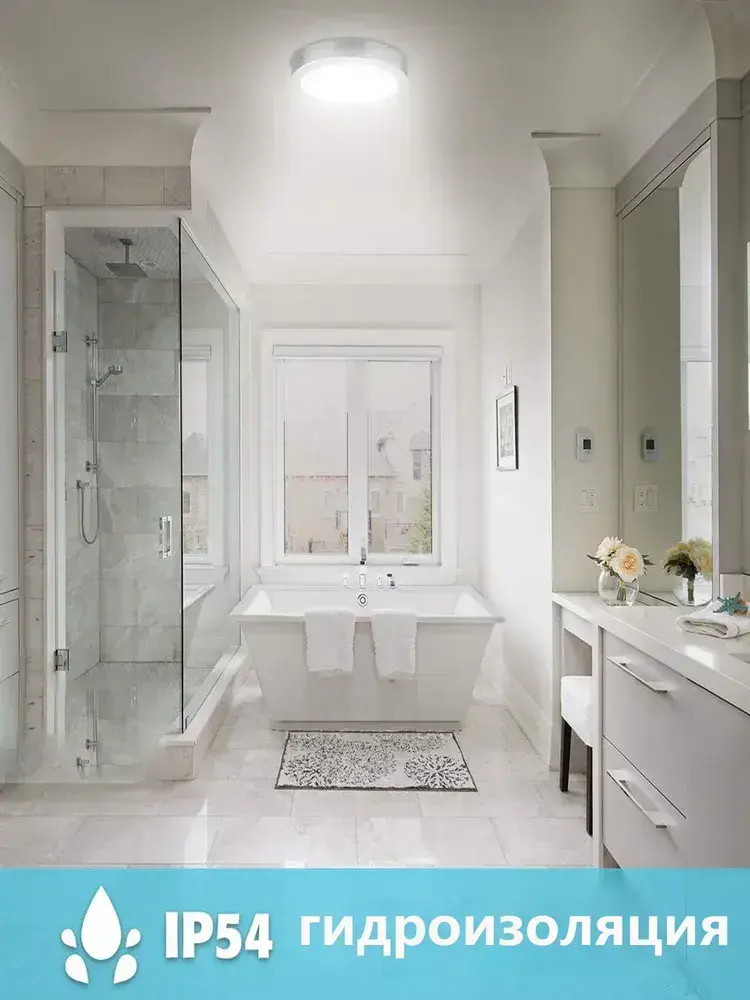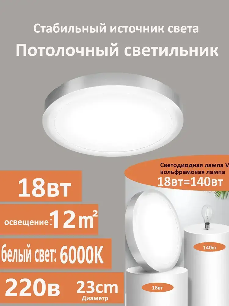 Настенно-потолочный светильник с серебряной рамкой, 18 Вт, 5000 К, для ванных комнат и кухонь площадью 10 м2