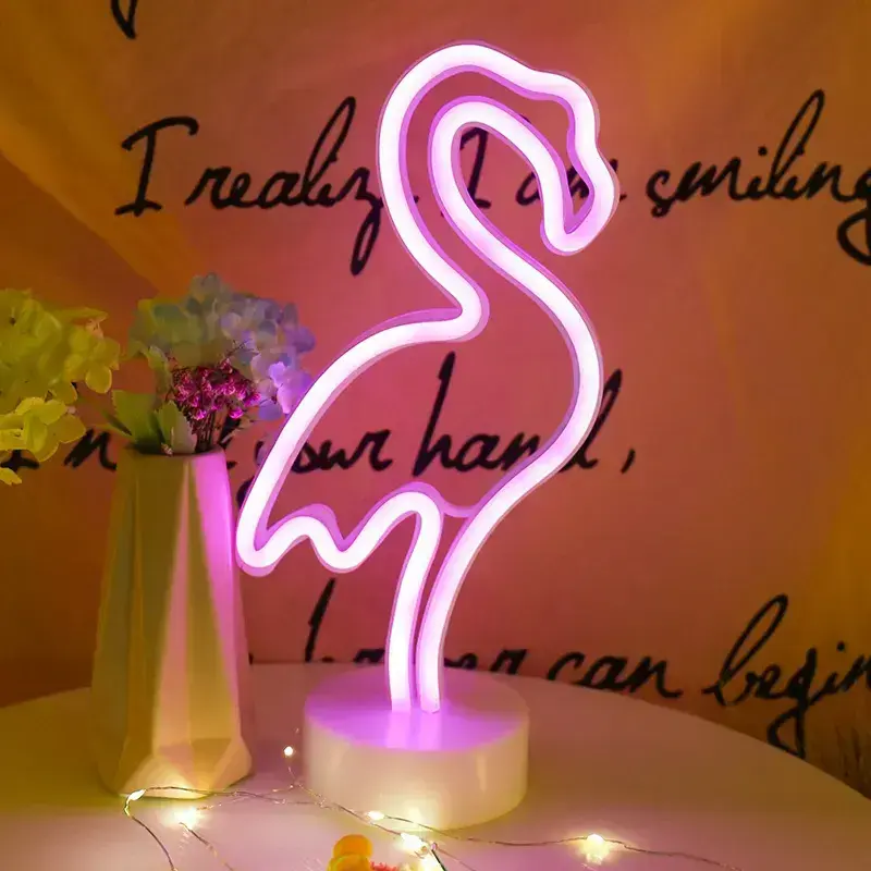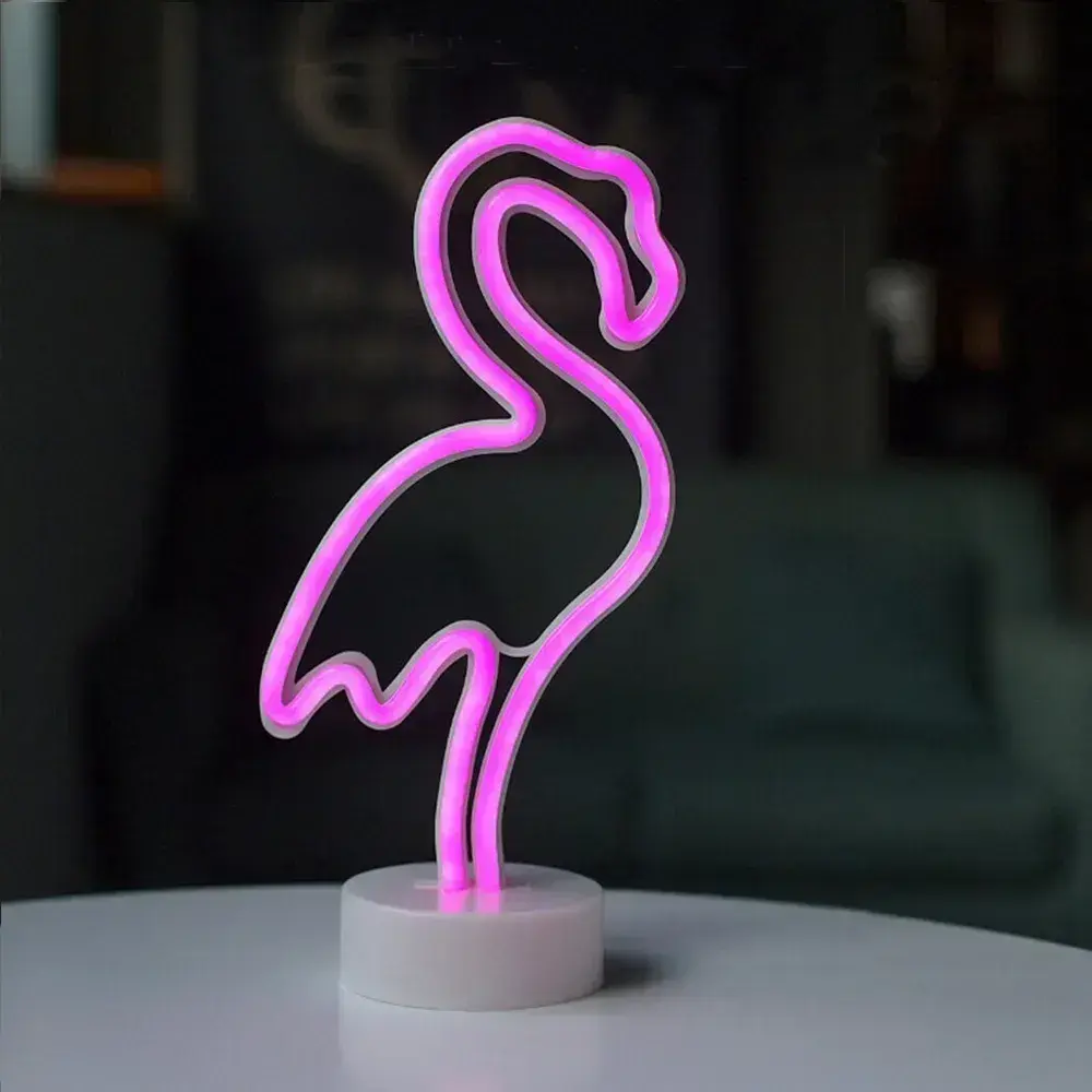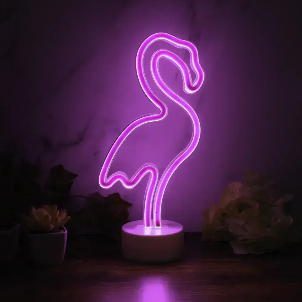 Неоновый светильник декоративный ночник на батарейках "Розовый фламинго"