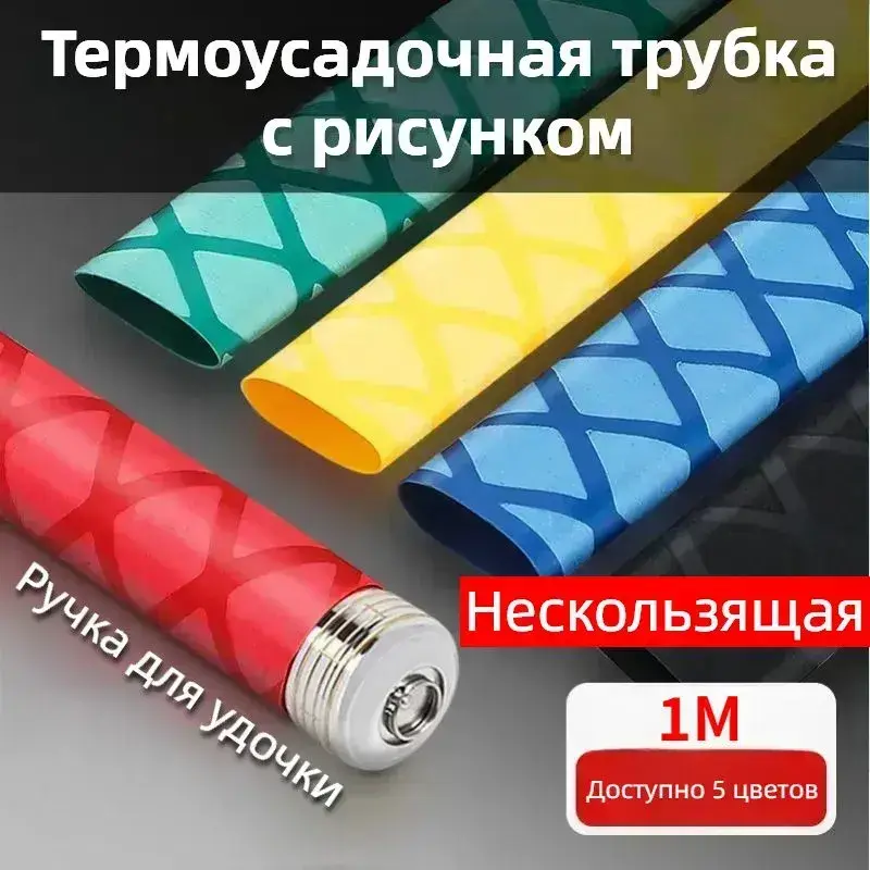 Нескользящая термоусадочная трубка с рисунком, Подходит для рыболовных снастей, спортивных товаров, ручек инструментов и т.д. ,Диаметр 50 мм, длиной 1 метр, красный.
