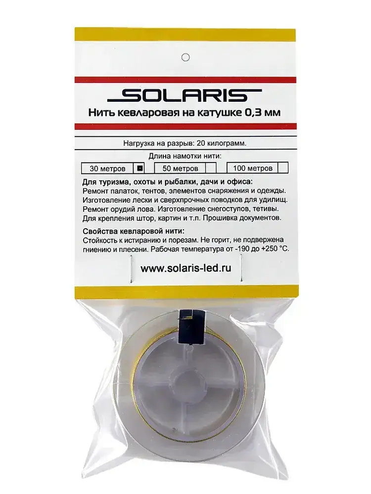 Нить кевларовая на катушке 0,3 мм х 30 м, SOLARIS, S6405