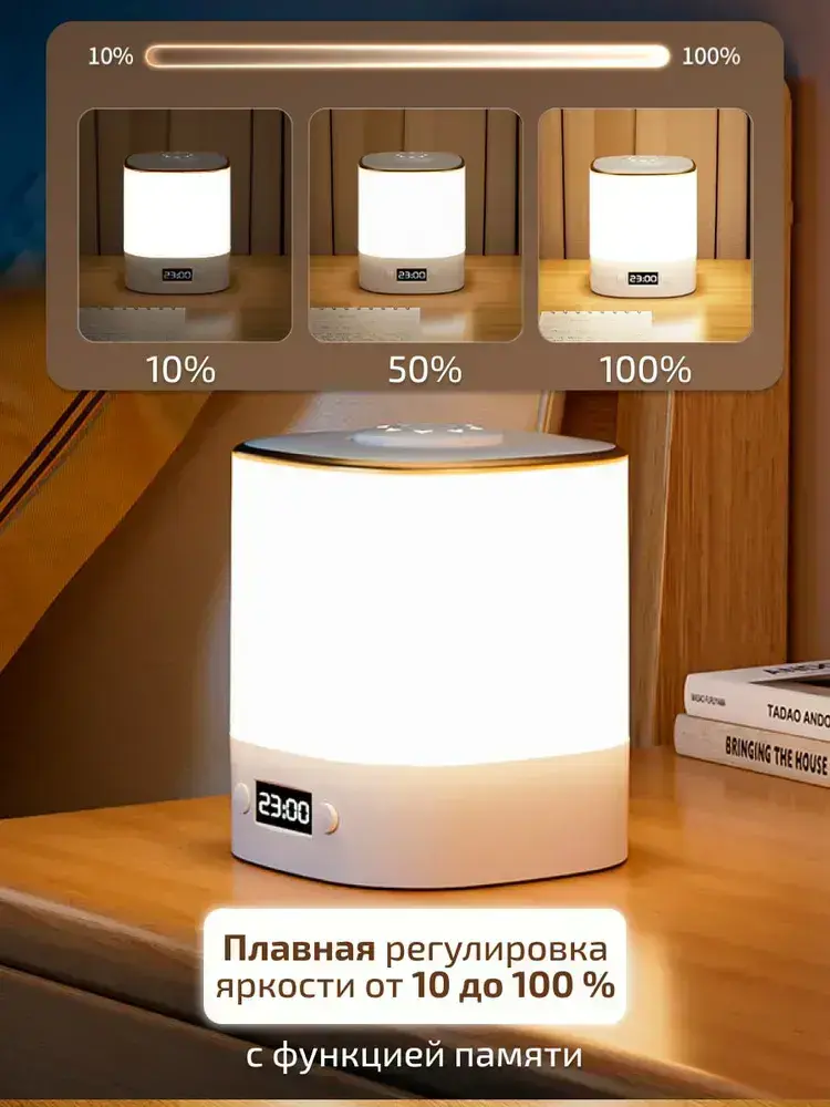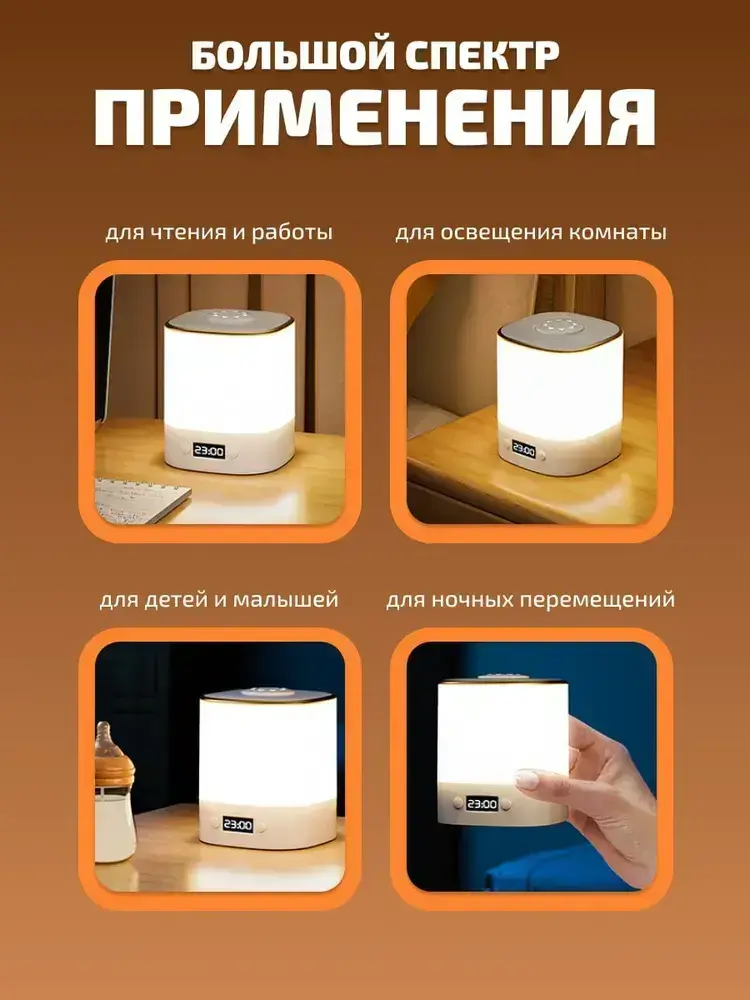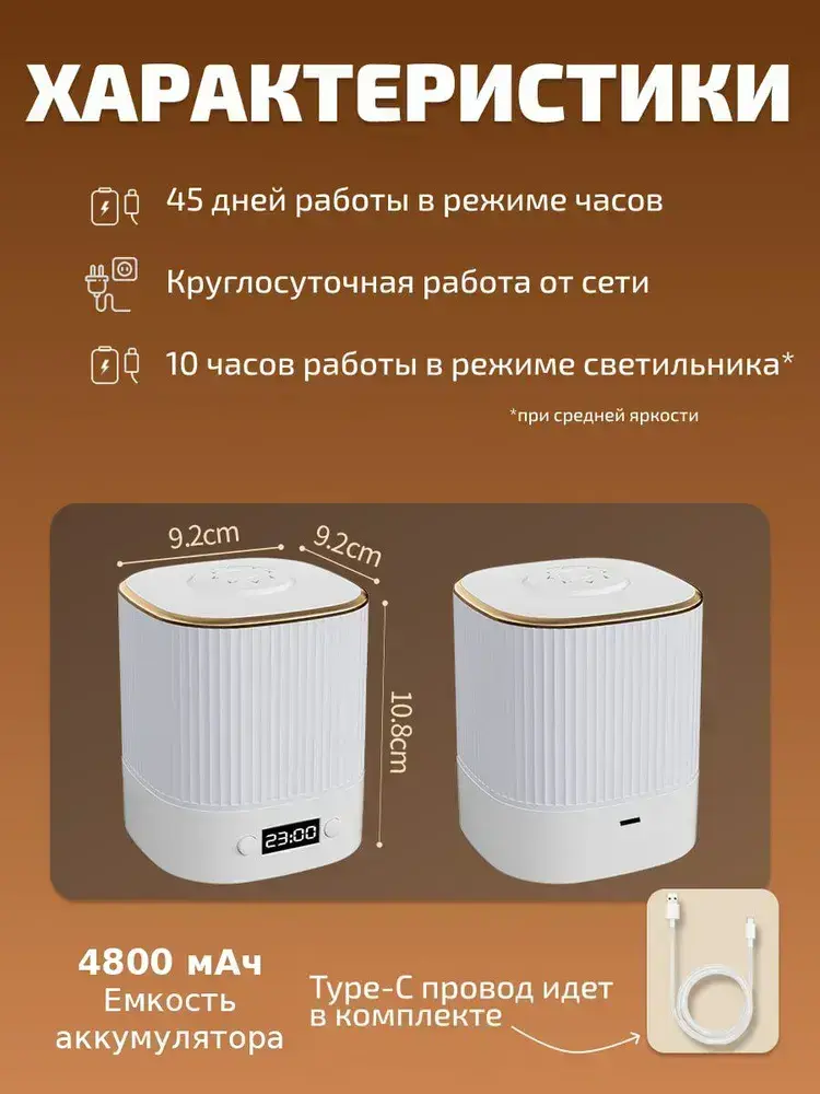 Ночник cветильник с часами настольный беспроводной