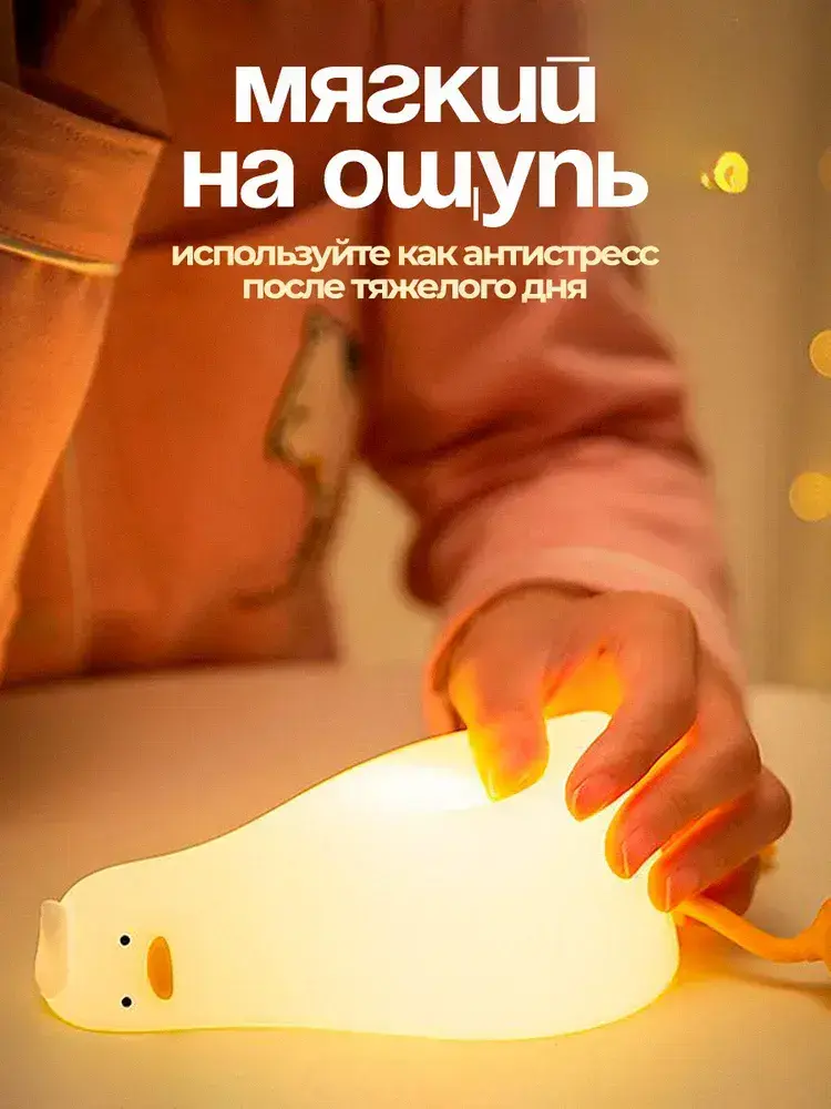 Ночник детский с таймером Уставшая уточка, беспроводной силиконовый светильник для ребенка