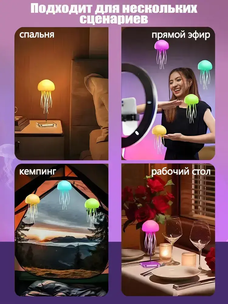 Ночник медуза,Окружающий свет с голосовым управлением, подвижные ножки, полная смена цвета, можно подвешивать или стоять,светильник настольный,умный ночник