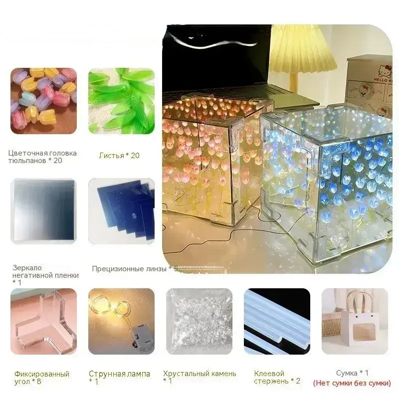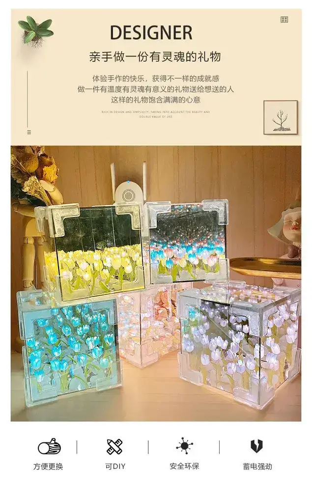 Ночник ручной работы DIY цветок волшебный куб тюльпан ночник