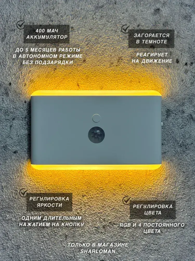 Ночник с датчиком движения, беспроводной светильник на магните, светодиодный