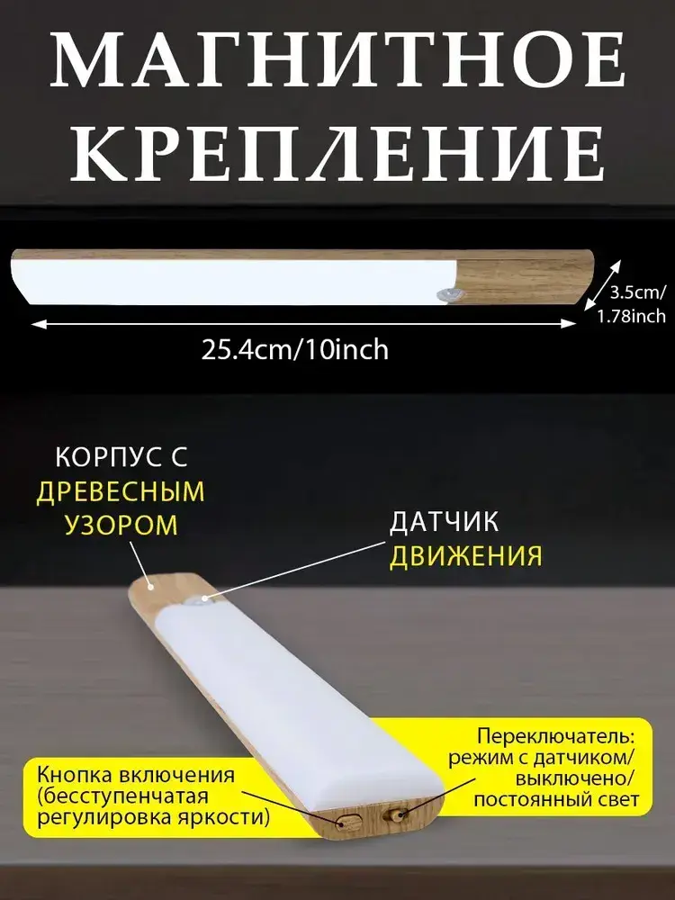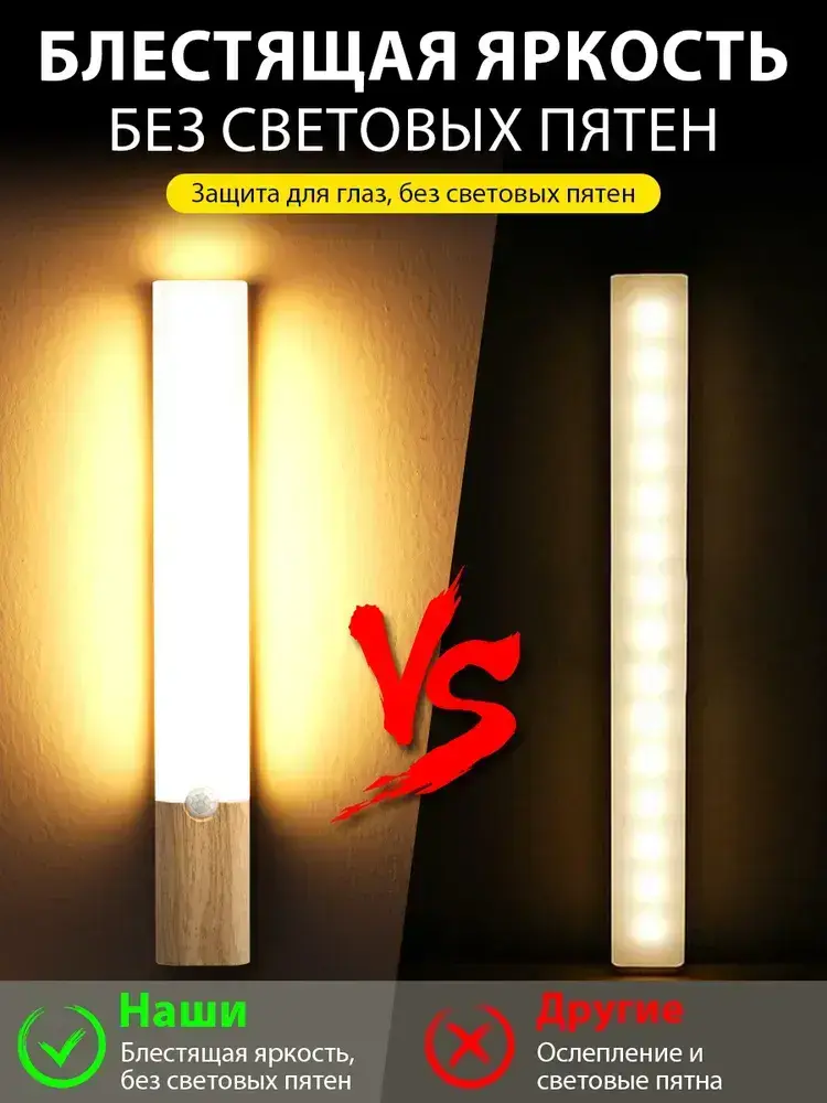 Ночник с датчиком движения/светильник с датчиком движения и магнитом / Ночник аккумуляторный факел