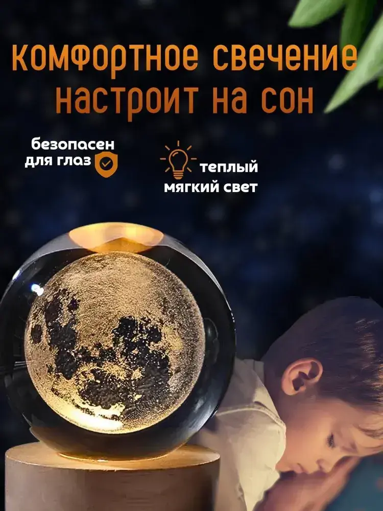 Ночник стеклянный шар светильник Луна