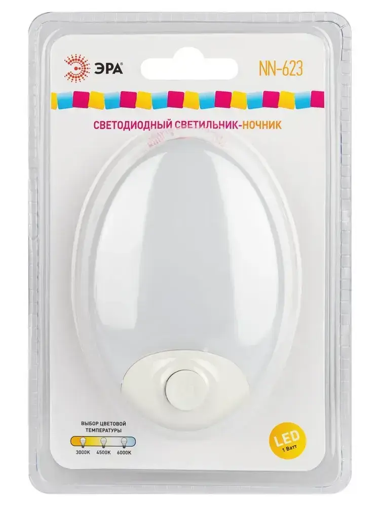 Ночник - светильник светодиодный ЭРА NN-623-SW-W в розетку с выключателем белый