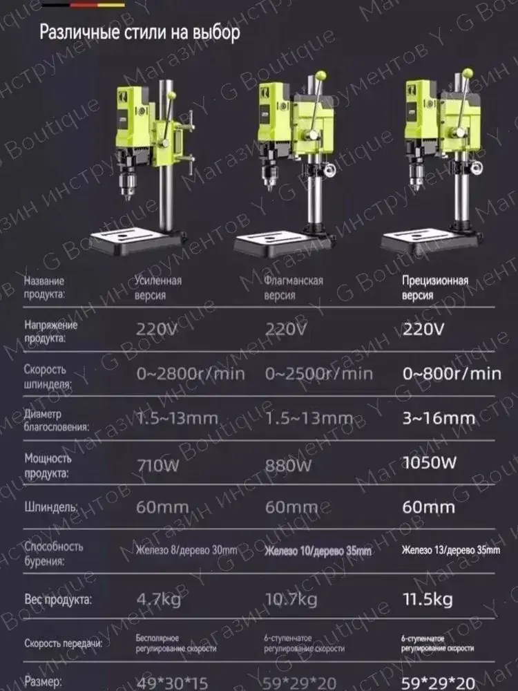 Новый небольшой бытовой сверлильно-фрезерный станок с рабочим столом, 1050 Вт/60 мм/800 об/мин, 6-ступенчатая регулировка скорости