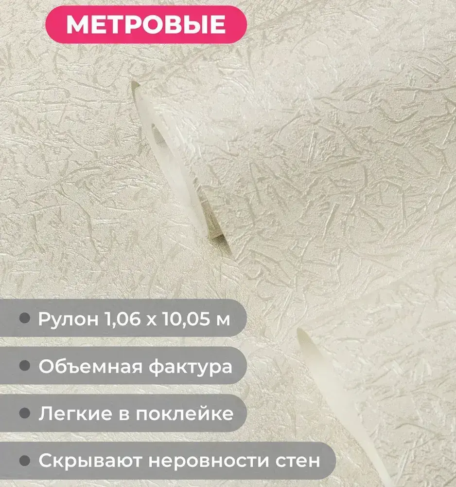 Обои флизелиновые 1.06. ASOZN-12, светло-бежевые, глянцевые однотонные без подгона, для кухни, гостиной, коридора, спальни, детской