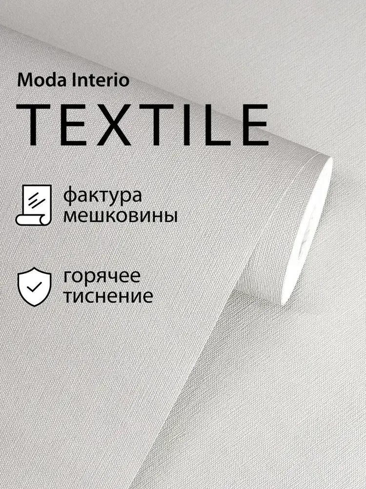 Обои флизелиновые 1.06, виниловые серые однотонные Textile (Moda Interio) метровые под ткань в гостиную и на кухню