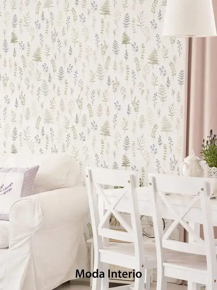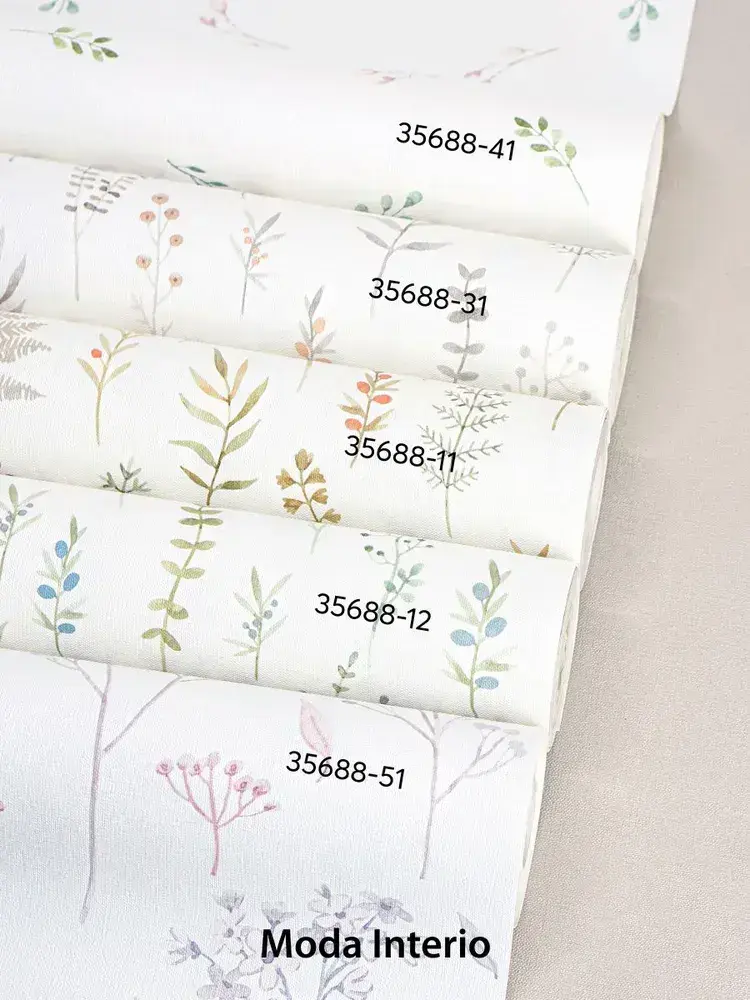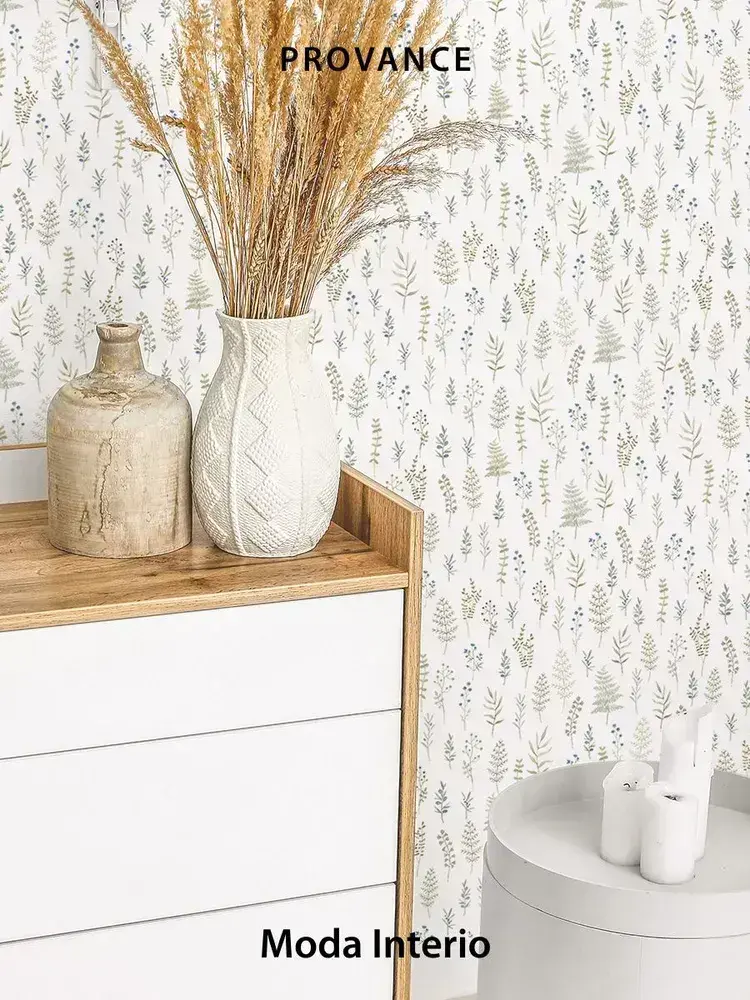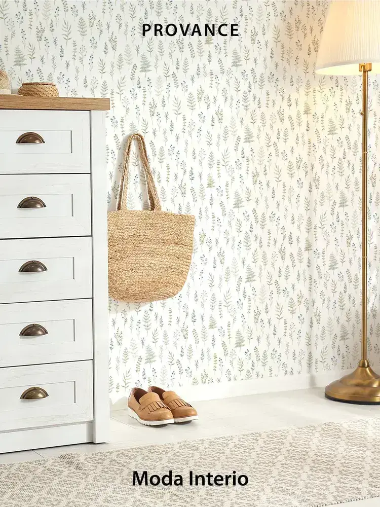 Обои флизелиновые Provance (Moda Interio), прованс веточки сине-зеленые, для прихожей, метровые