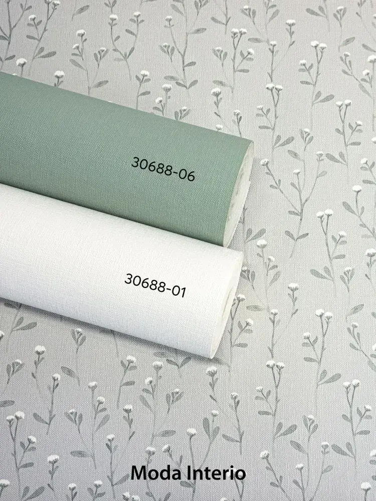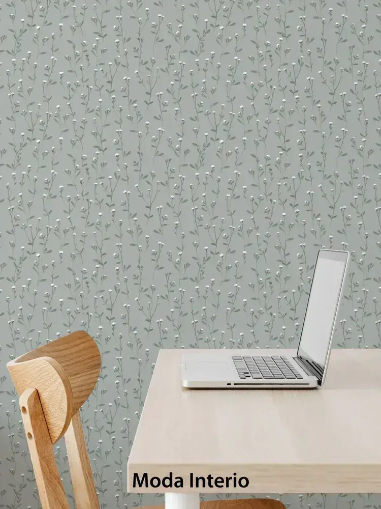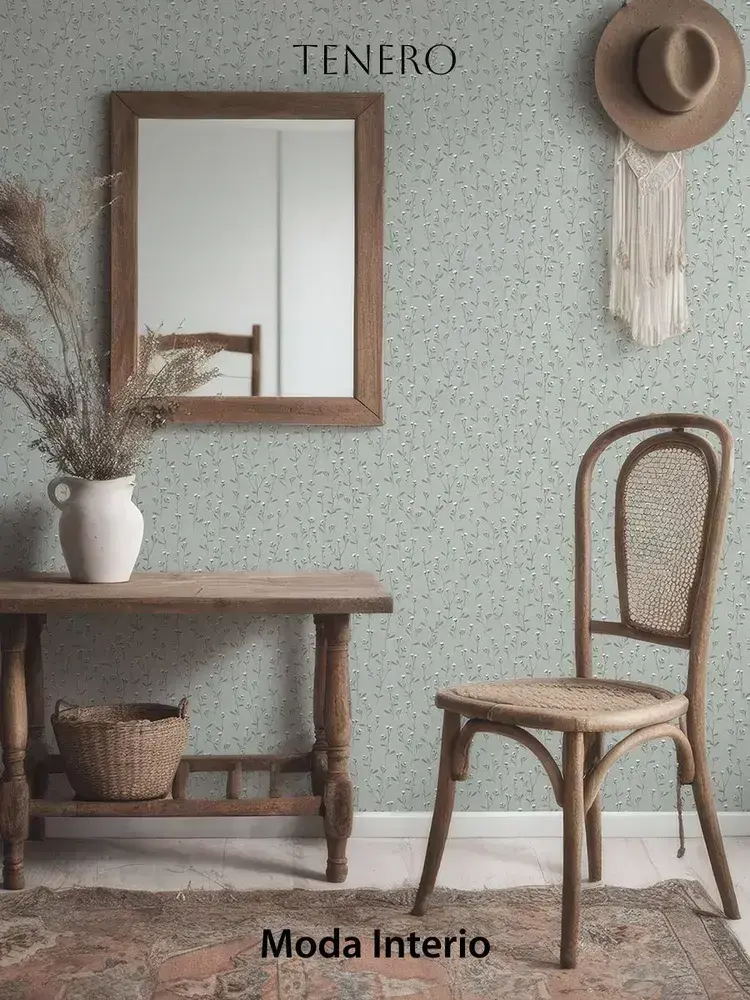 Обои флизелиновые, веточка на зеленом фоне, метровые, для спальни, Tenero (Moda interio, арт.32688-56)