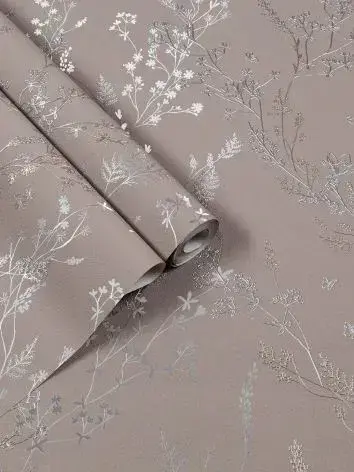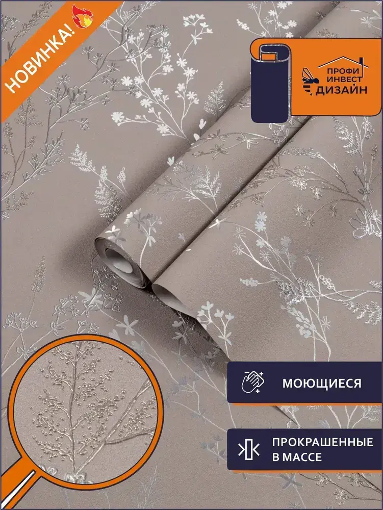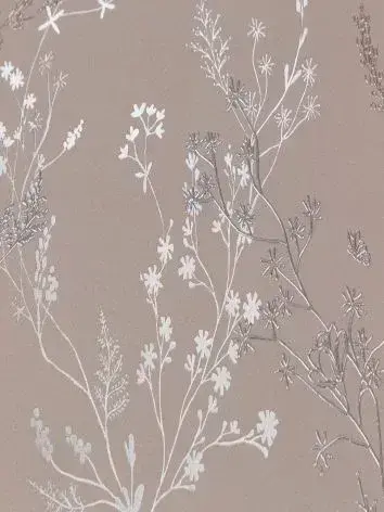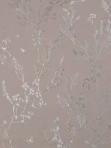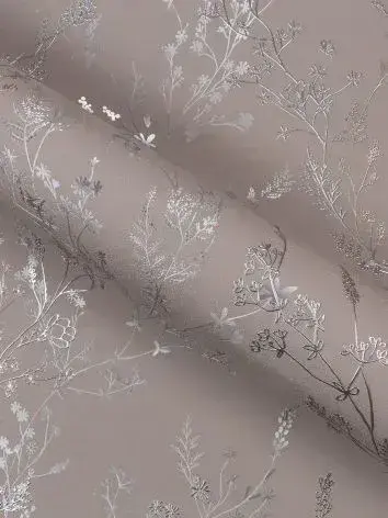 Обои Винил на флизелине 10 м, серебряные веточки на фактуре окрашенной ТАУП стены, прованс, флористика для спальни, гостиной