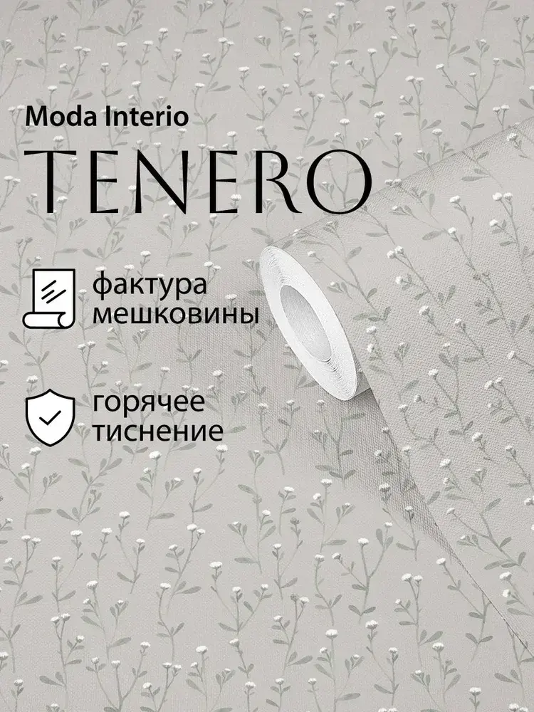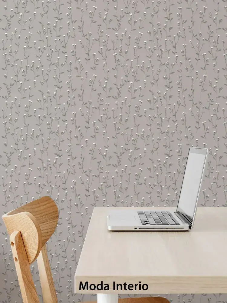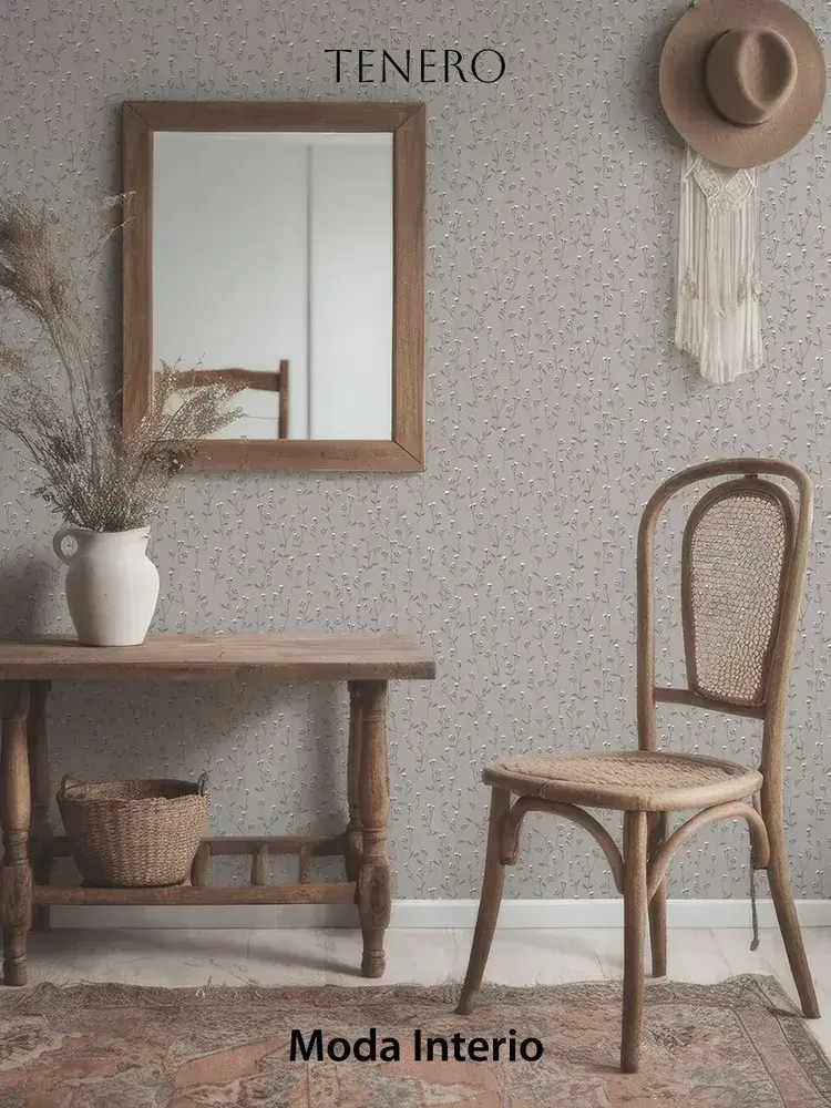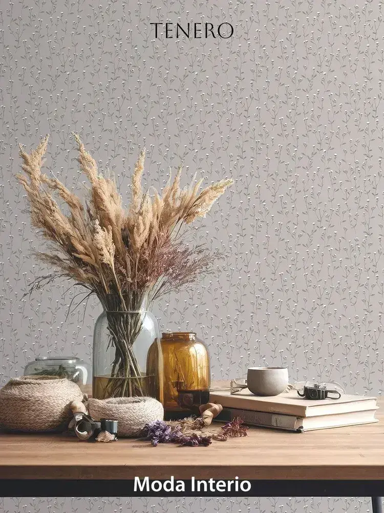Обои винил на флизелине, веточка на серо-бежевом, метровые, для гостиной, Tenero (Moda interio, арт.32688-55)
