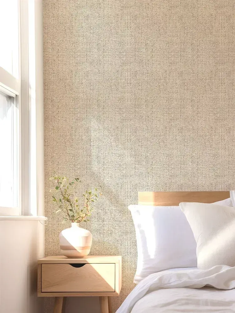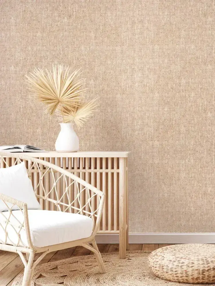 Обои виниловые флизелиновые Мешковина бежевая, метровые, для коридора (VILIA, 1015-61)