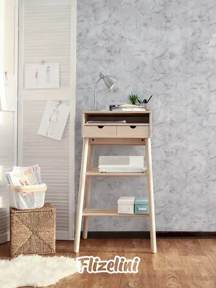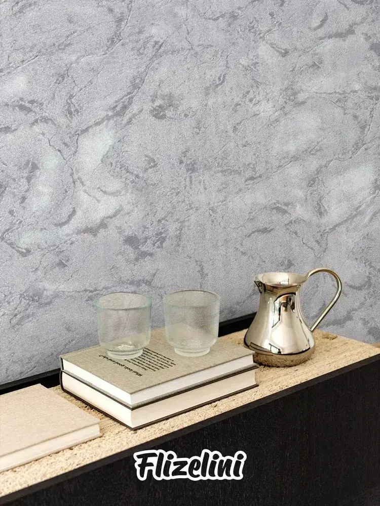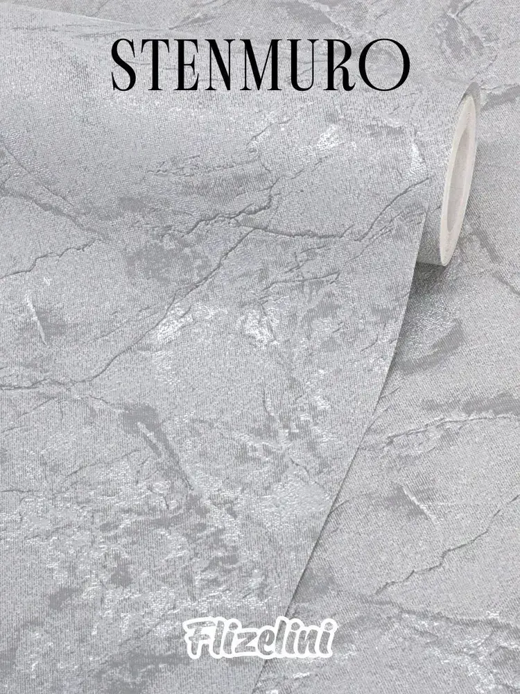 Обои виниловые на флизелине, фактурная штукатурка, темно-серые с серебристыми прожилками, каменная стена, антивандальные метровые, для прихожей Stenmuro (Flizelini, 1900-22)