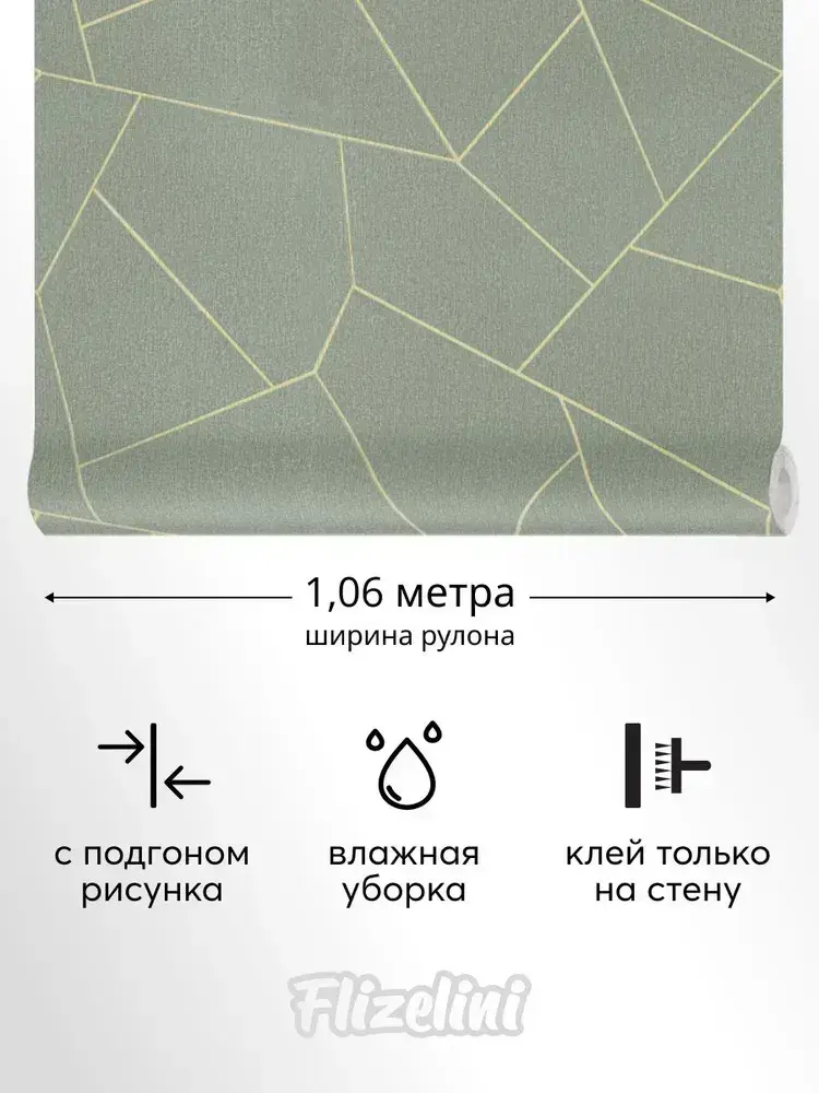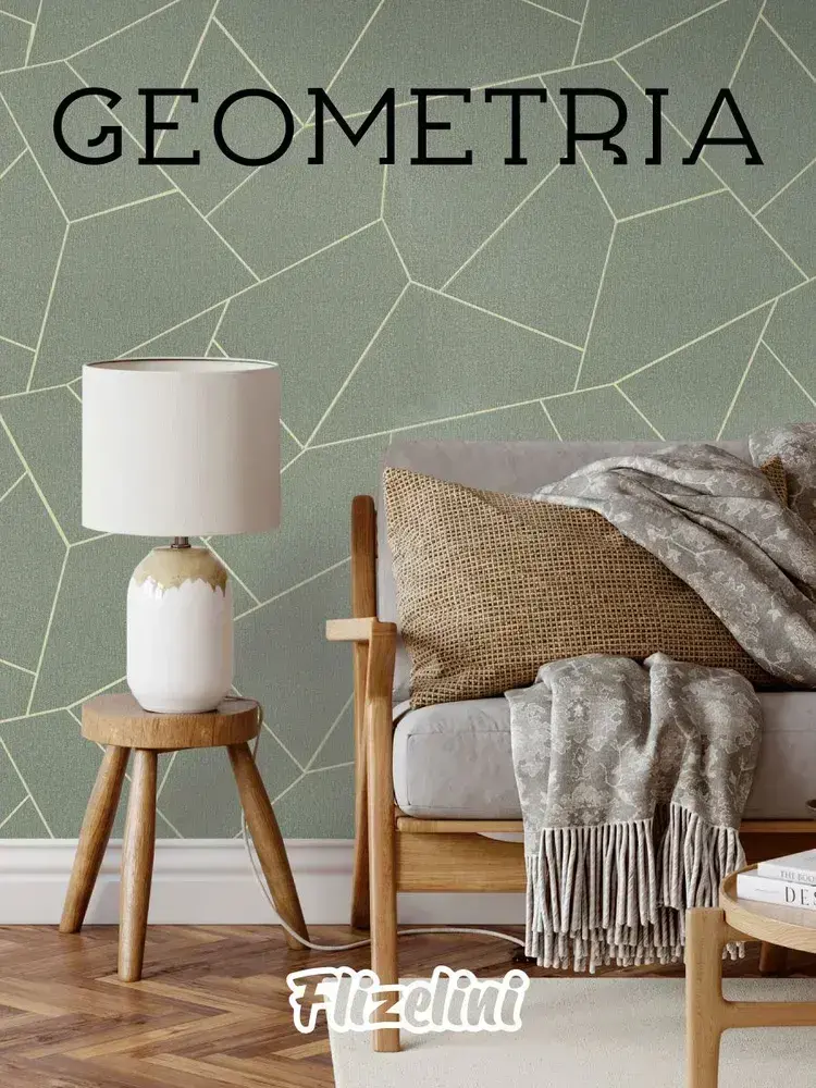 Обои виниловые на флизелине геометрия на зеленом, антивандальные, метровые, для детской, Geometria (Flizelini, 1888-71)