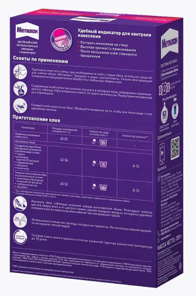 Обойный клей Meтилан Винил Премиум с индикатором 300г