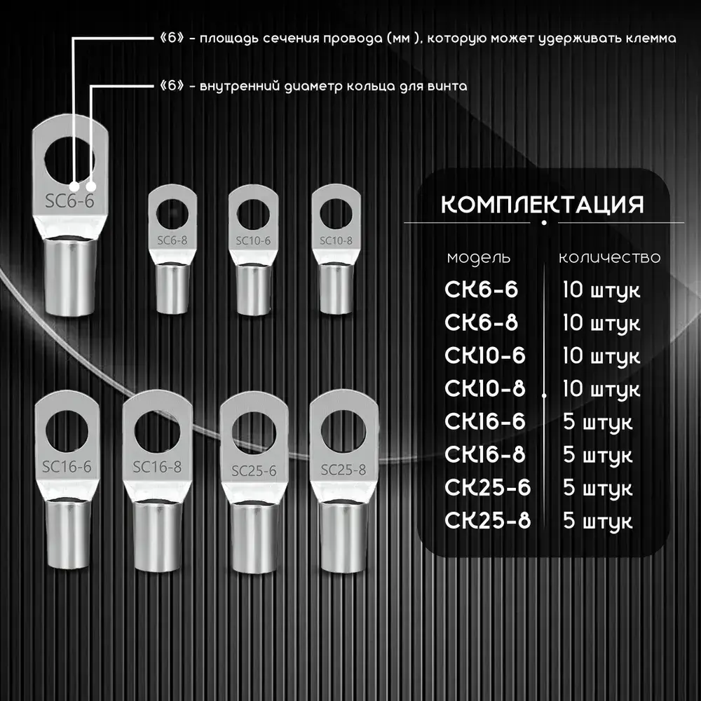 Обжимные медные клеммы типа SC 60 шт / кольцевые кабельные наконечники для проводов