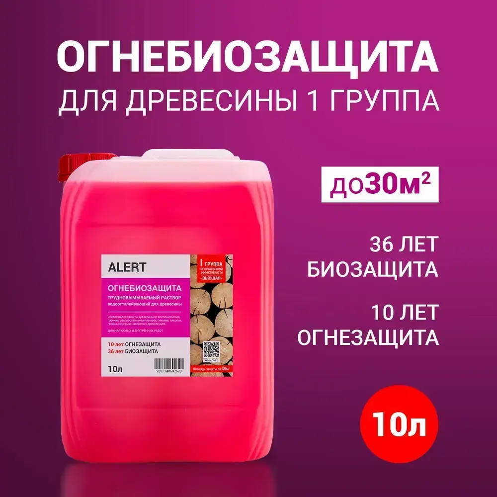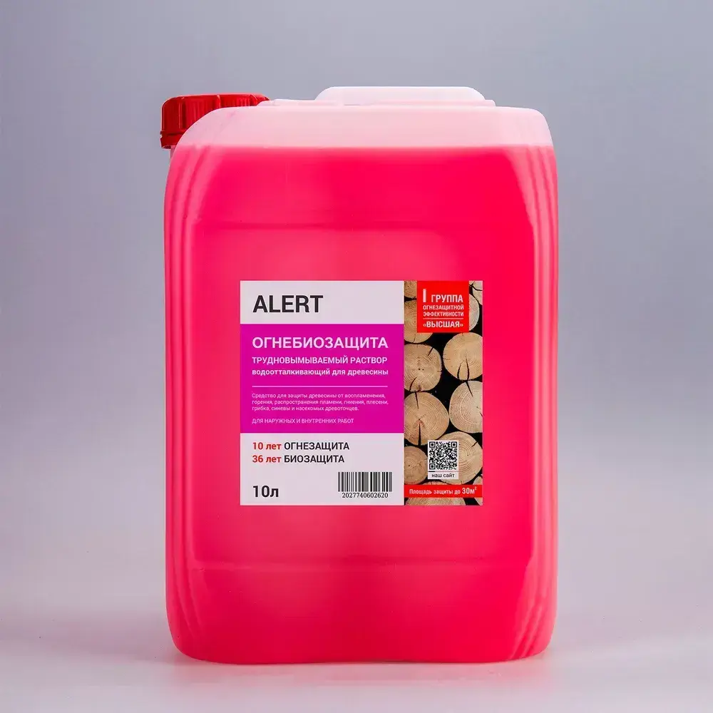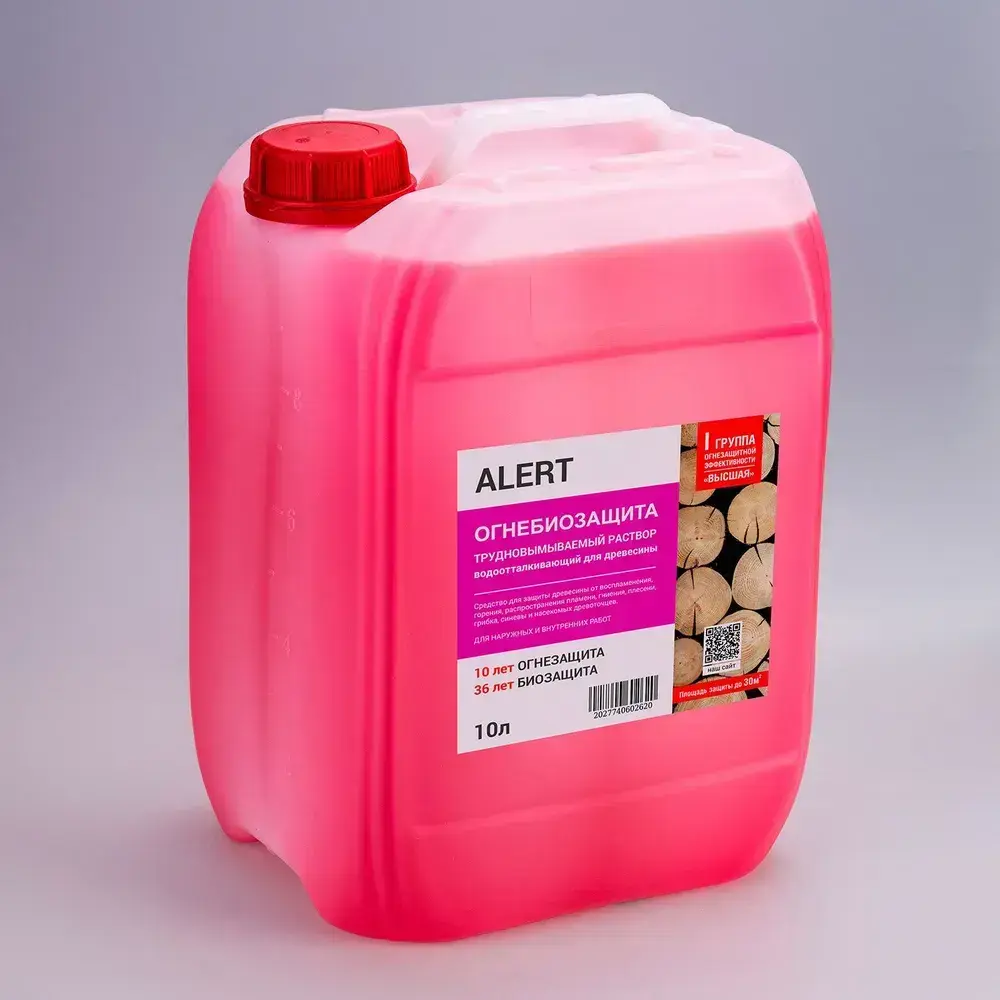 ОГНЕБИОЗАЩИТА для дерева трудновымываемый раствор 10л. ALERT PRO I-я группа огнезащиты по НПБ (высшая) для пропитки древесины защита от воспламенения, горения, гниения, плесени, грибка
