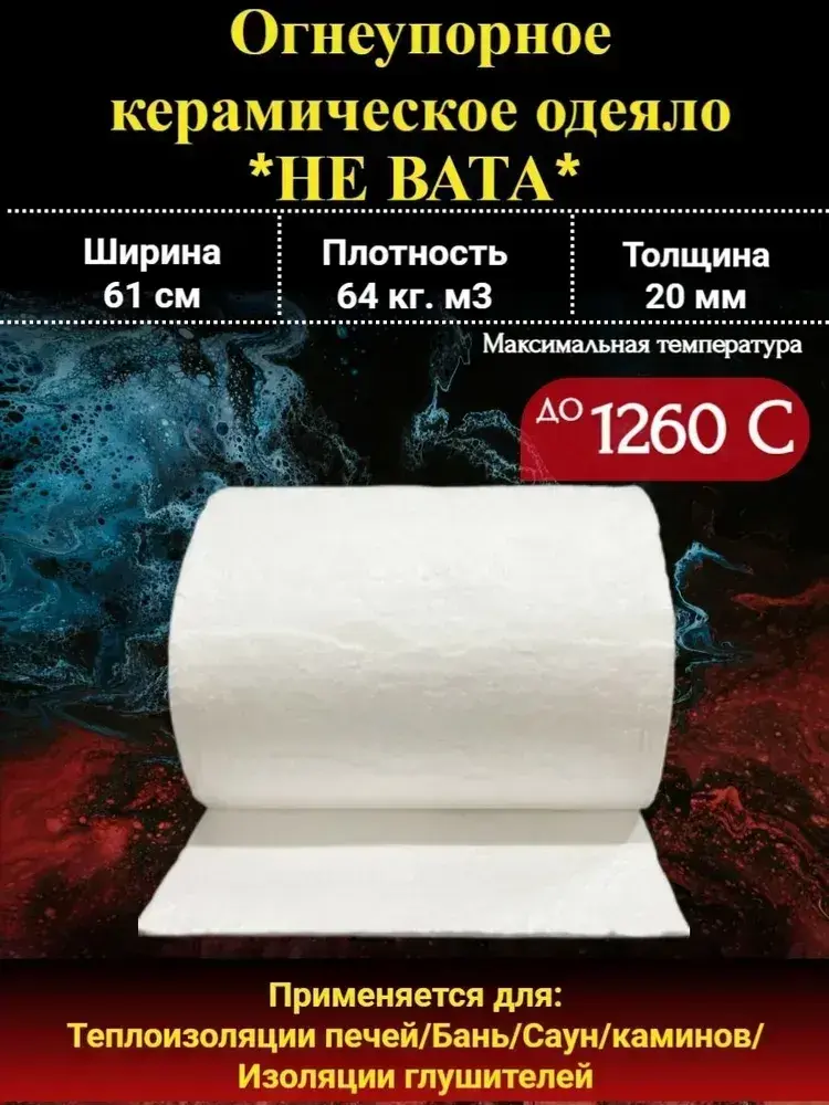 Огнеупорное керамическое одеяло 1260 градусов толщина 19 мм плотность 64 кг на куб длина 0,5 м для печей и дымоходов