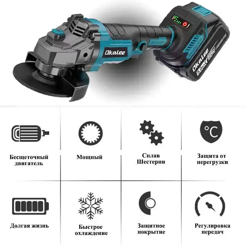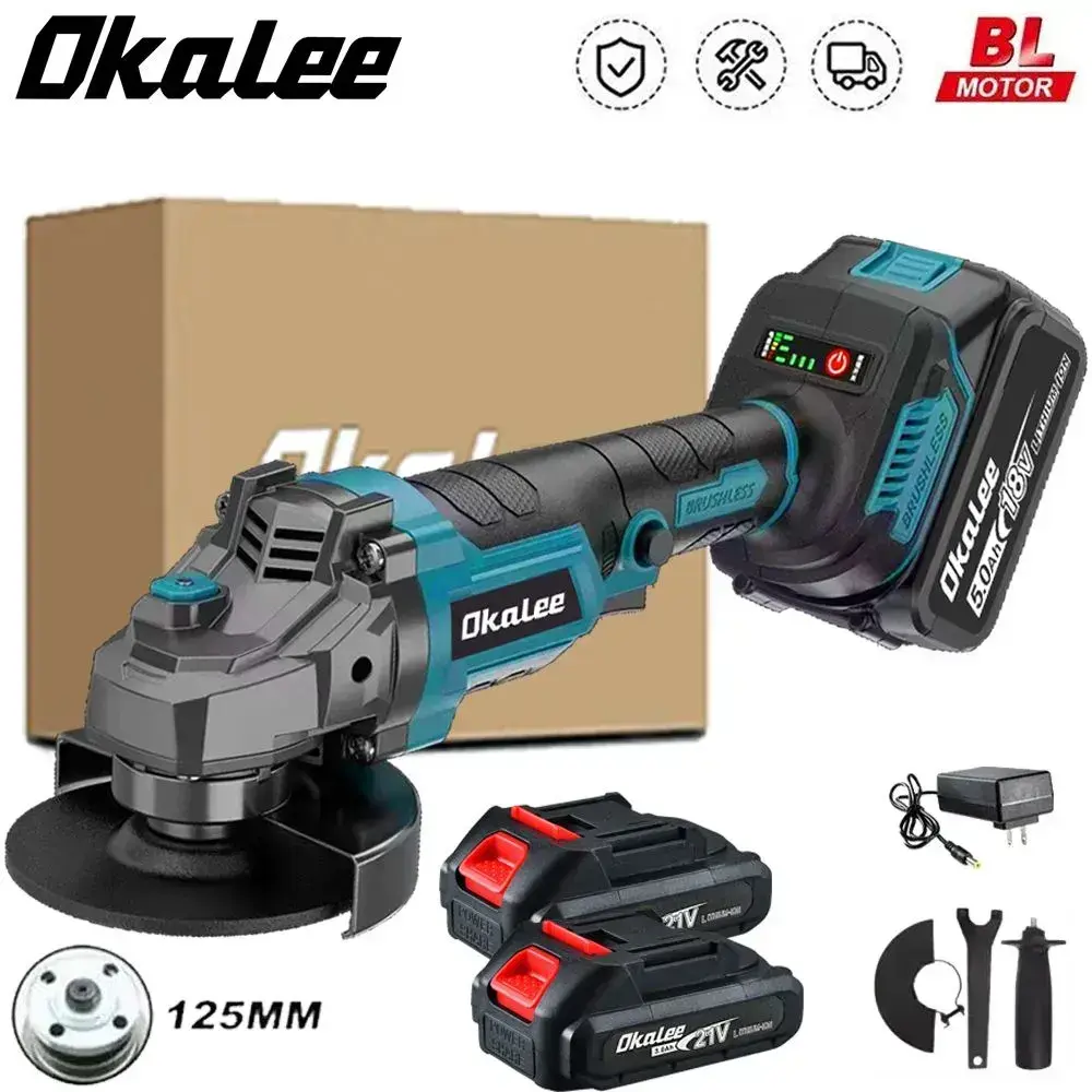 OKALEE инструмент 125 мм, 2300 Вт, бесщеточная портативная, 19500 об/мин, Болгарка электрическая ,угловая шлифовальная машина, шлифовка/резка(2 шт. 3,0 мА)