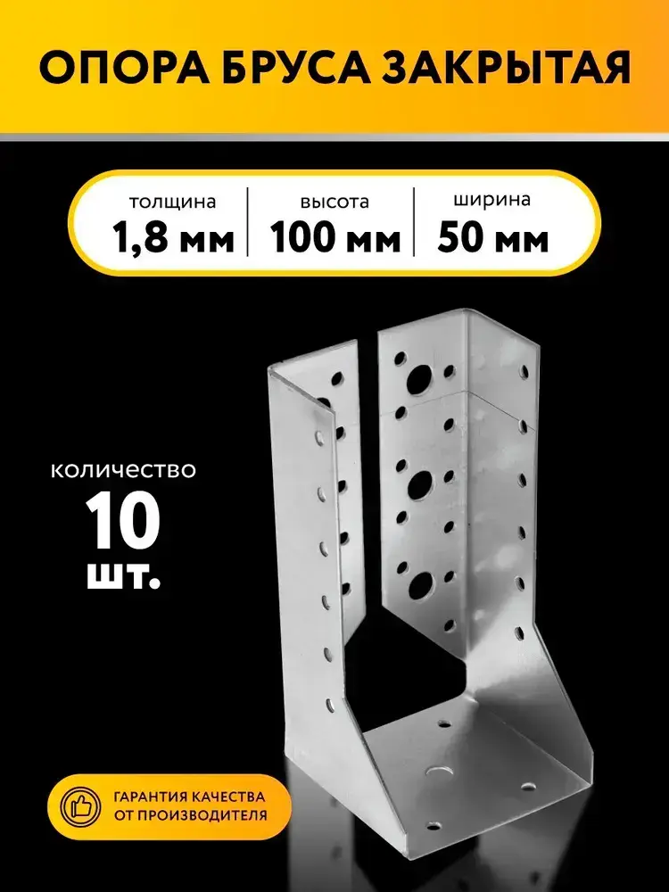 Опора бруса закрытая 50х100х1,8 мм (10 шт)