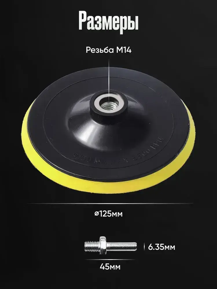 Опорная тарелка для полировальных кругов и 3 войлочных насадки 125 мм., для финишной полировки кузова авто и фар