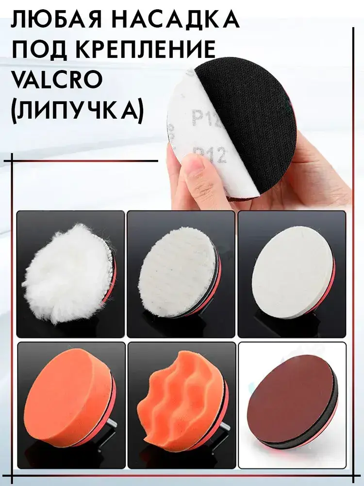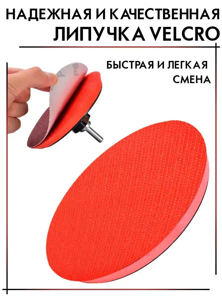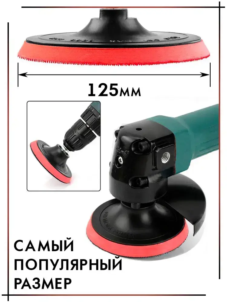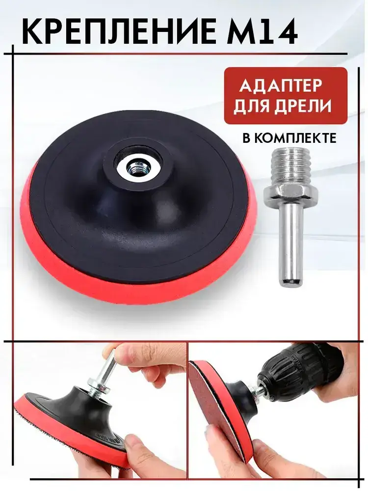 Опорная тарелка насадка для дрели и УШМ с липучкой и адаптером, круг шлифовальный 125, комплект 2 штуки